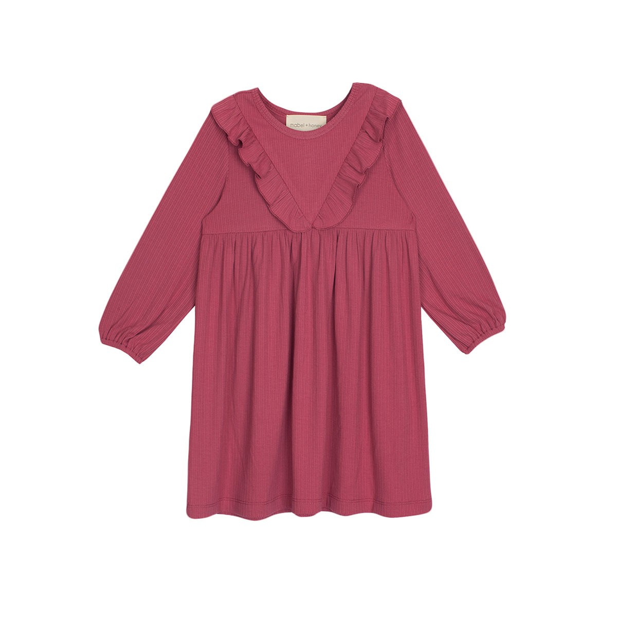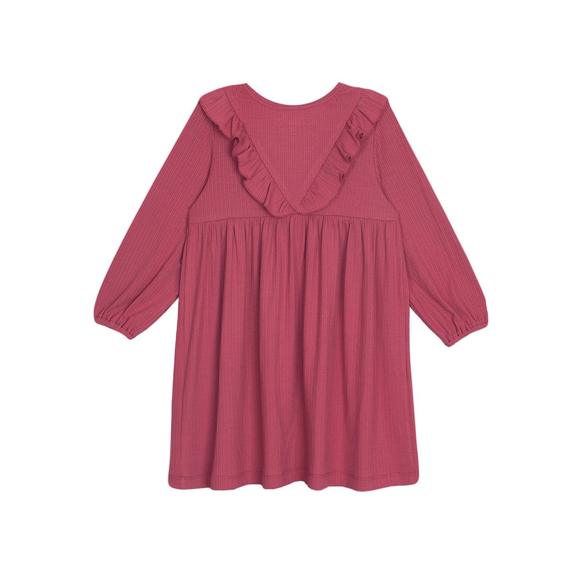 Introducing the Camilla Dress in a delightful dusty rose shade! Crafted from cozy, breathable soft ribbed fabric, this dress features elegant ruffled detailing along the front and back shoulders and an empire waistline.
