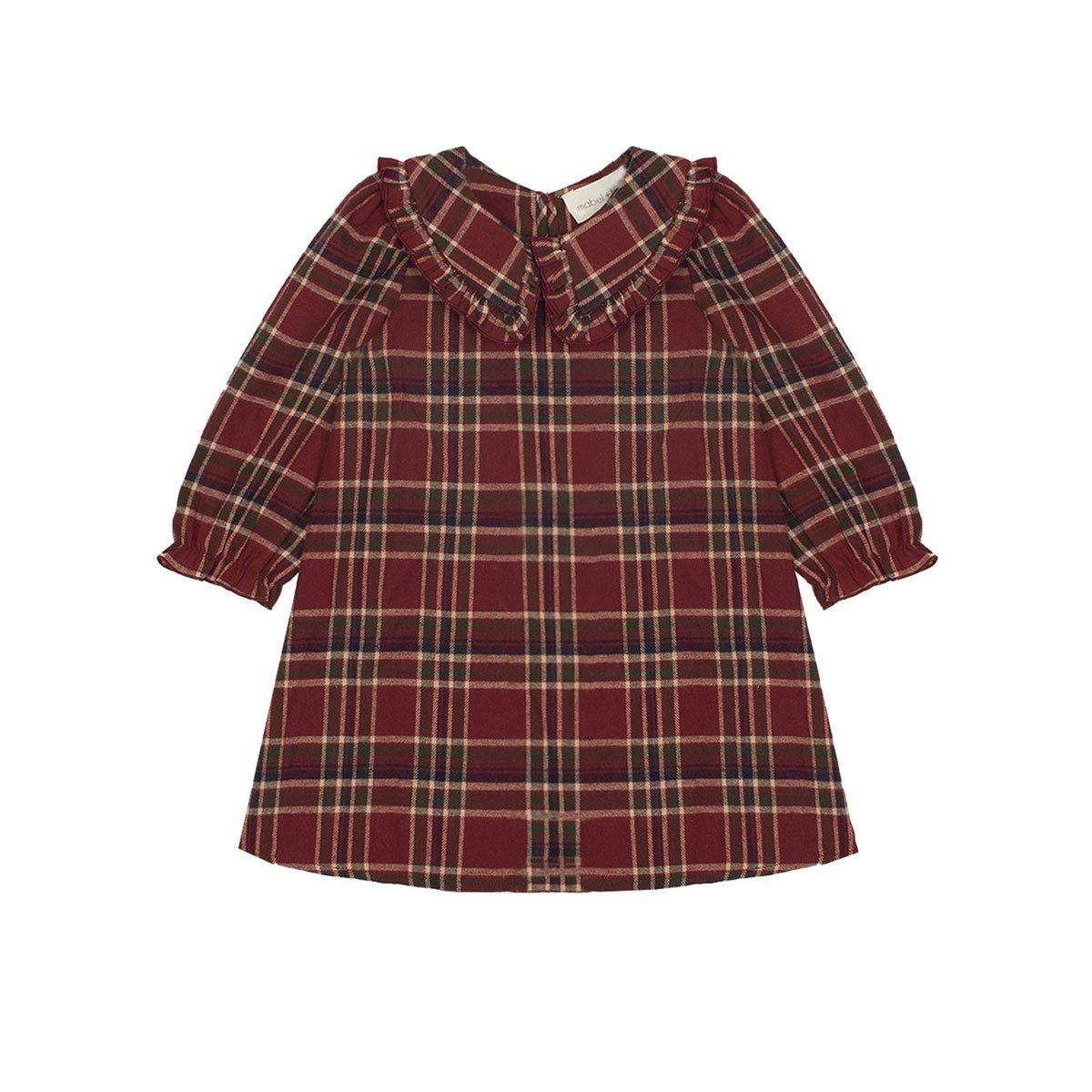Embrace the warmth and style of the season with the Grace Dress, designed to charm with its classic plaid pattern and sweet ruffle collar detail. This lovely dress features long sleeves and a keyhole opening,