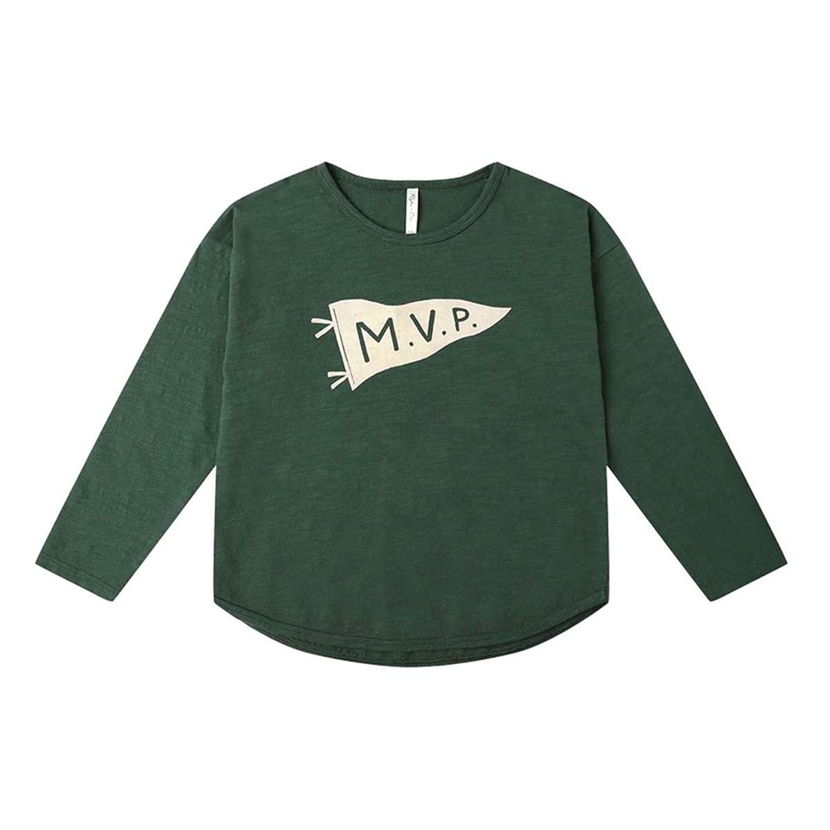 {"reviews":[],"offset":0,"limit":10,"total":0}"Full Description:\nRelaxed-fit long sleeve crewneck tee featuring a gently curved hemline. Shoulder snaps included on sizes 0-3M - 18-24M for easy changes.<br><br>Featuring our 'mvp' spot print on our 'green' hue.<br><br>Care: Machine wash cold. Tumble dry low.<br><br>Made of 100% cotton.\n\n"