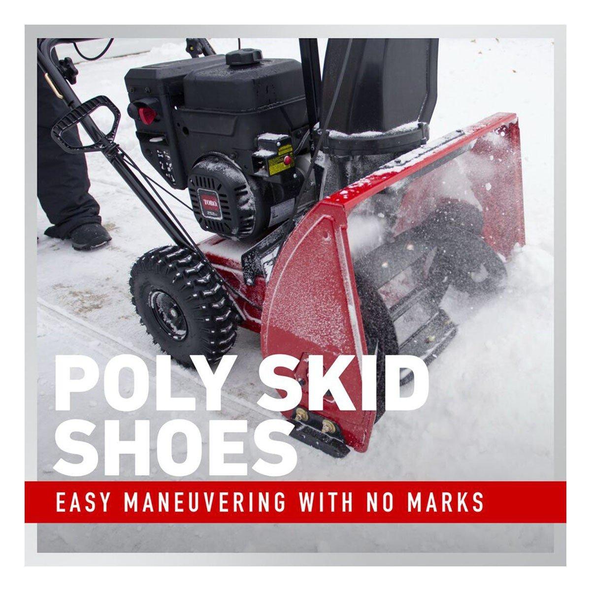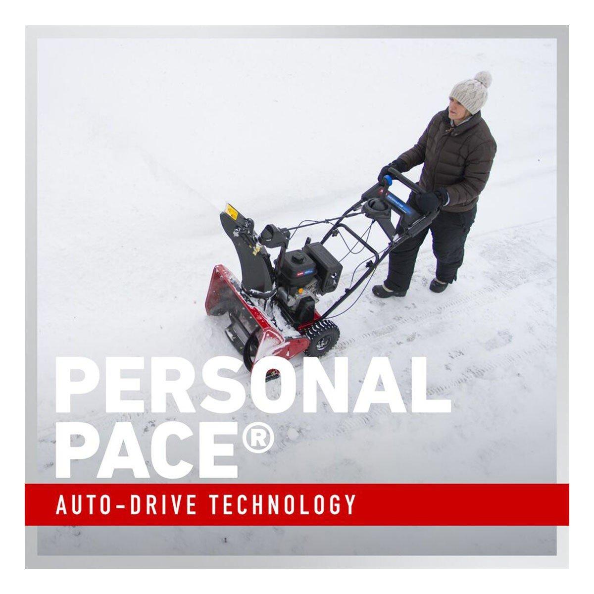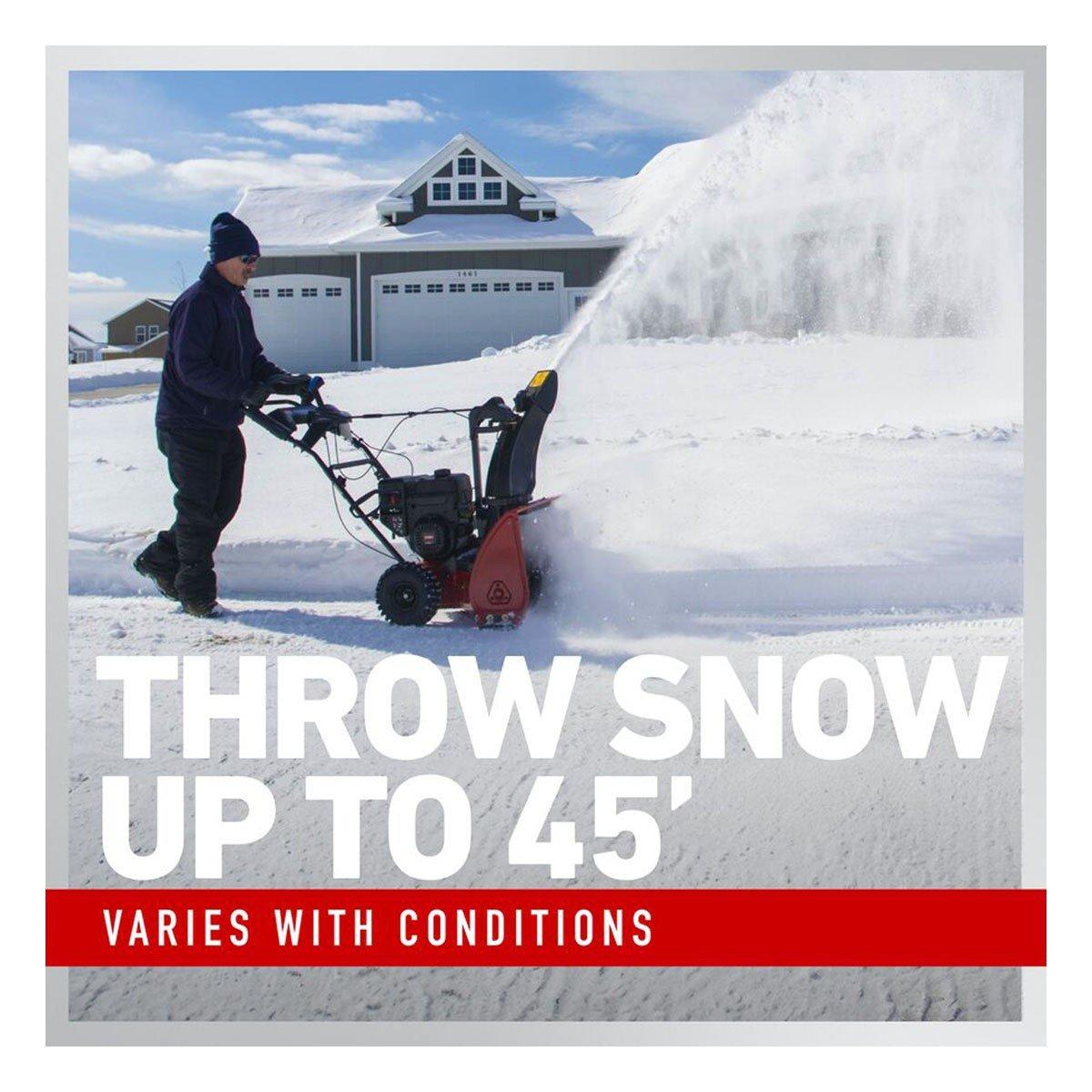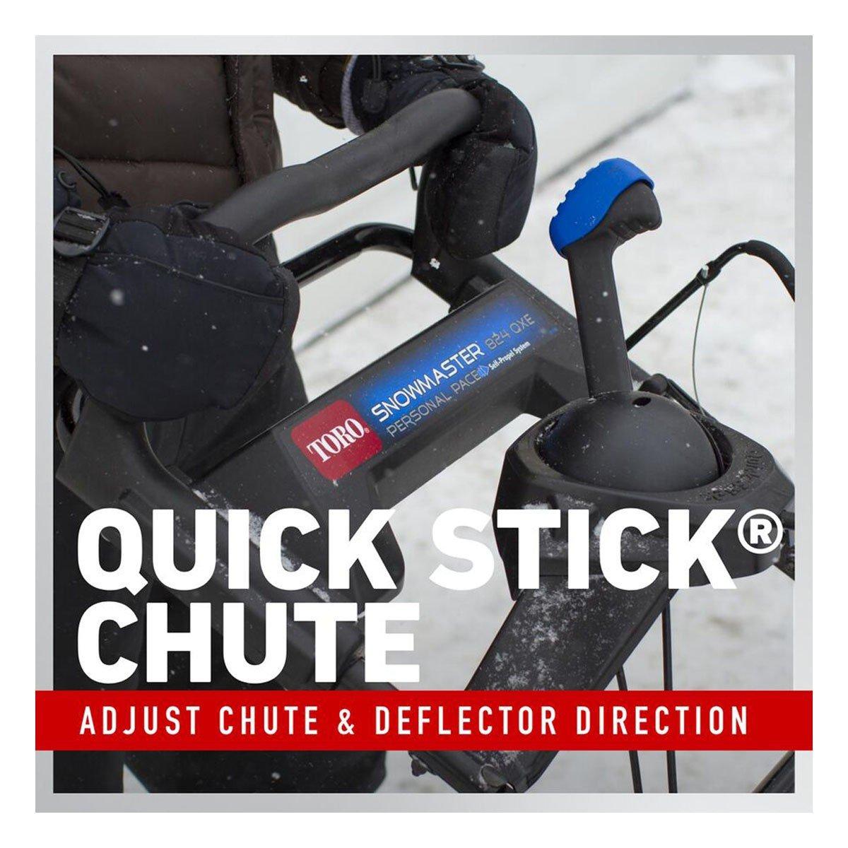 Features a Toro Premium 252cc OHV 4-cycle engine with electric start, this snow blower efficiently throws snow up to 45 feet. Tear through the roughest snow and ice in record time with Toro's SnowMaster Snow Blower. Make snow blowing less work with the Self-propel Personal Pace® System, which matches your walking speed and provides better traction in all snow conditions. Quickly change the chute and deflector direction with a single, smooth motion thanks to the Quick Stick® chute control. It's ultra-maneuverable, easy enough for anyone to handle and still powers through tough, end-of-driveway snow.