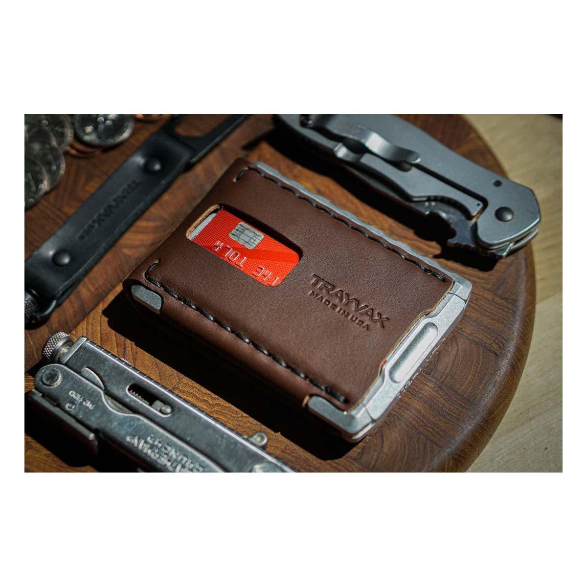 Keep your money, credit cards, and ID easily accessible with this cool and stylish Trayvax Venture billfold card case wallet. This sleekly modern skinny wallet features an ID window and can hold up to 20 cash bills and 12 credit cards so that they are always conveniently on-hand while on the go. This mens and womens minimal wallet features a unique built-in magnetic closure which can be effortlessly opened for easy cash and card access, and can be automatically re-engaged for optimal security. This Trayvax simple wallet features carefully hand-stitched leather, an aircraft-grade aluminum frame, and heavy duty braided nylon thread to ensure that this cardholder wallet is built for long-lasting reliability. The minimalistic leather wallet is small enough to be easily kept in a front pocket while you travel. Bill fold wallet is backed by Trayvax's 65 year warranty.