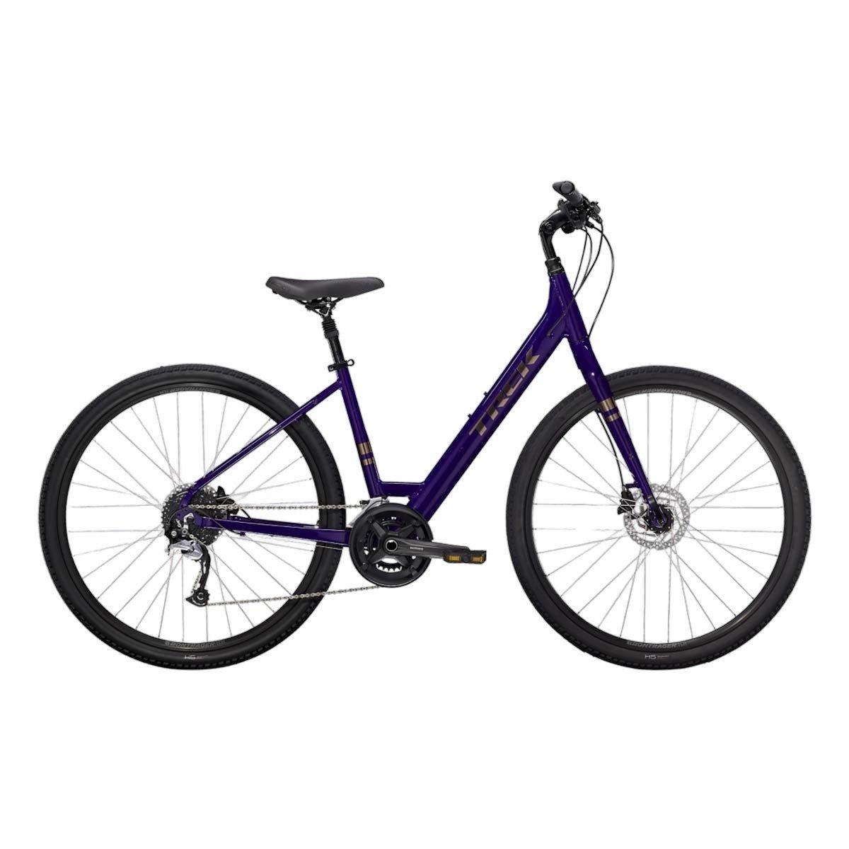 The Trek Verve 3 Disc Lowstep Hybrid Bike is designed for those needing a comfortable yet versatile ride. The Trek Verve 3 hybrid bike features lowstep geometry to make for easy on and off, while the combination of the suspension seat post and vibration-absorbing grips make sure a super comfortable ride. You'll enjoy 18 gears to power through changing terrain and hydraulic disc brakes for powerful stopping. Plus, the Trek Verve 3 hybrid bike is long-lasting and durable thanks to the puncture-resistant tires and internal cable routing. Whether you're looking to commute or casually ride, check out the Trek Verve 3 Disc Lowstep Hybrid Bike.