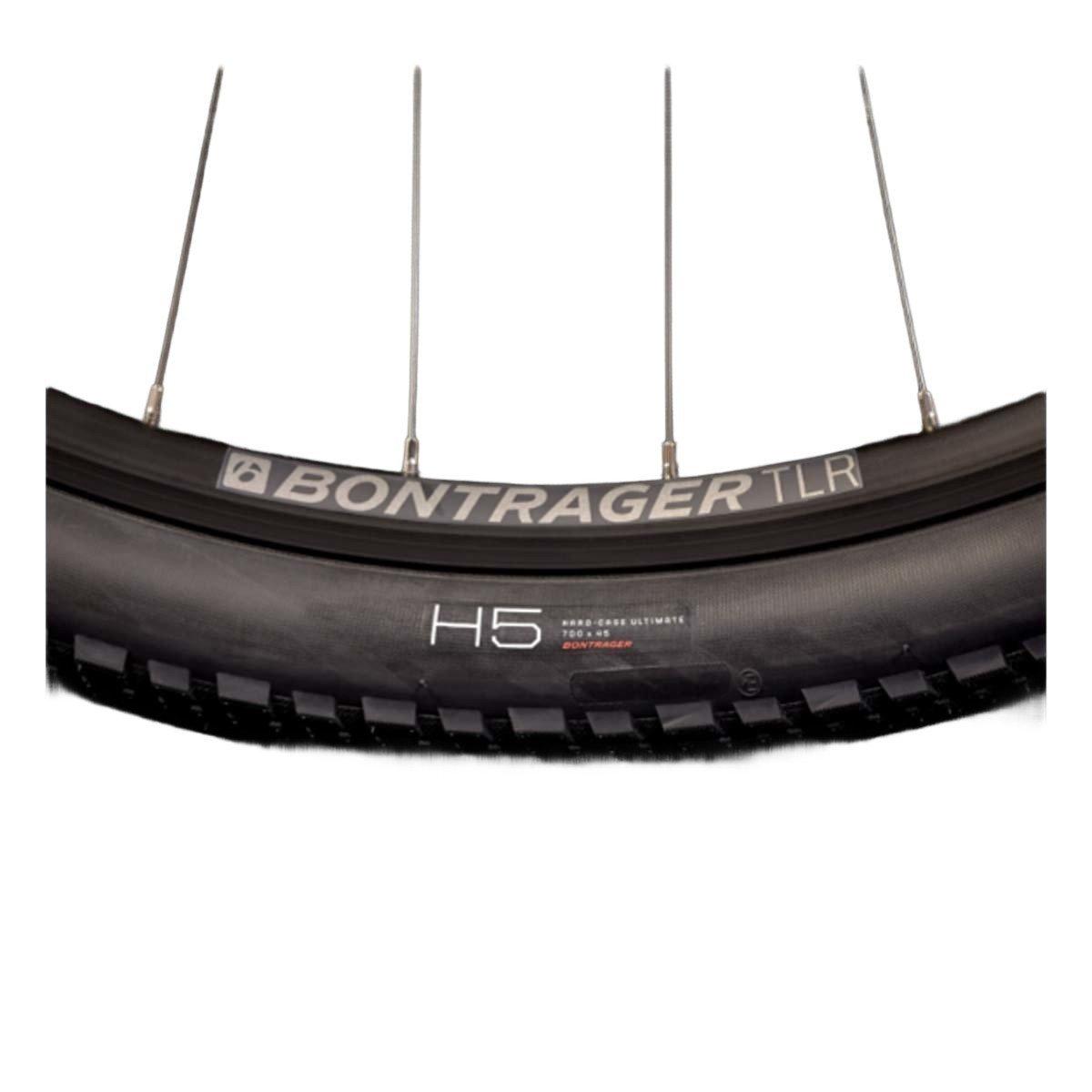 - Tire: Bontrager H5 Hard-Case Ultimate, wire bead, 60 tpi, 700x45c
