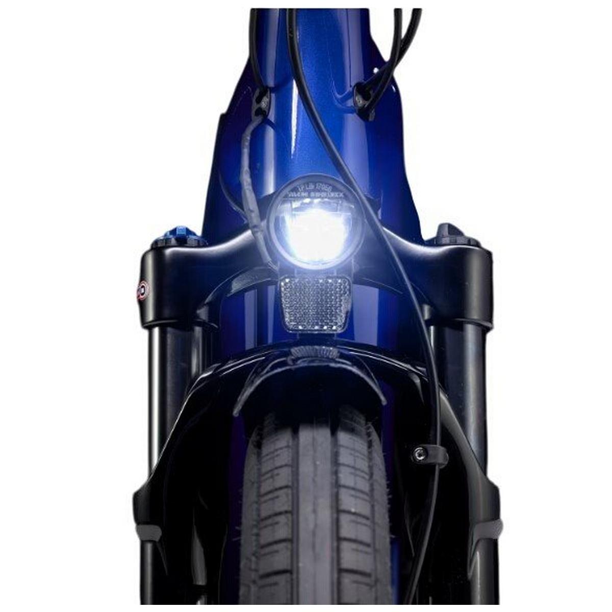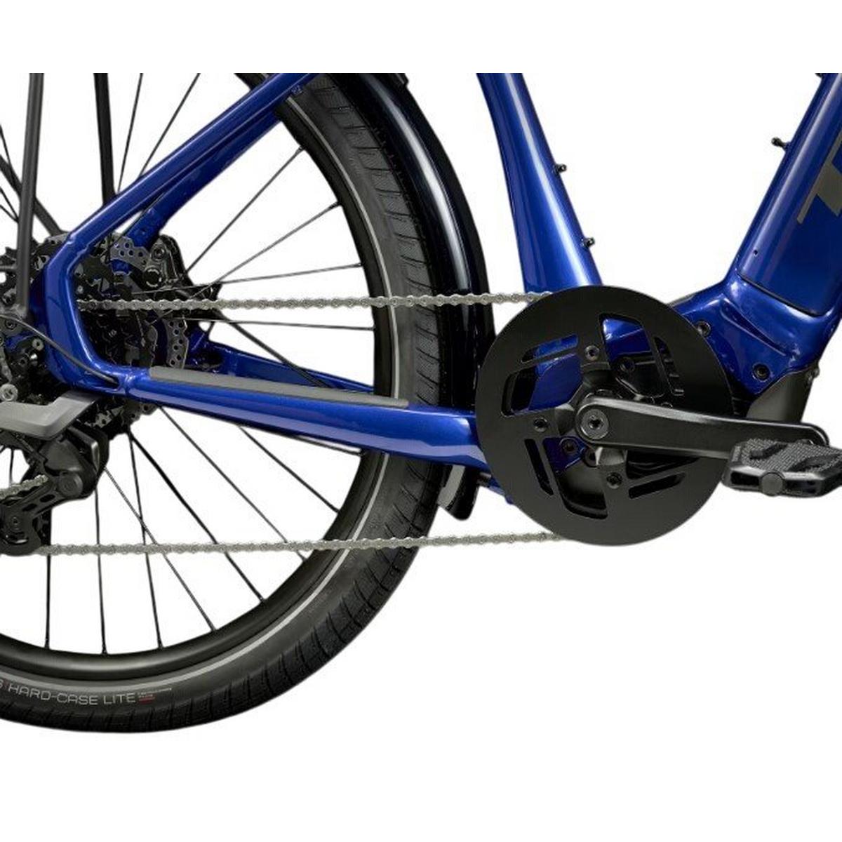 A sleek hydroformed aluminum frame that fully encases a long-life 500Wh battery, an ultra-powerful Bosch smart system Performance Speed Line CX drive unit that helps you sustain speeds of up to 28mph, and a Purion 200 controller. Plus, a suspension fork with lockout, a 9-speed Shimano CUES drivetrain, powerful 4-piston hydraulic disc brakes, an integrated front and rear lighting system, fenders, and a rear rack.