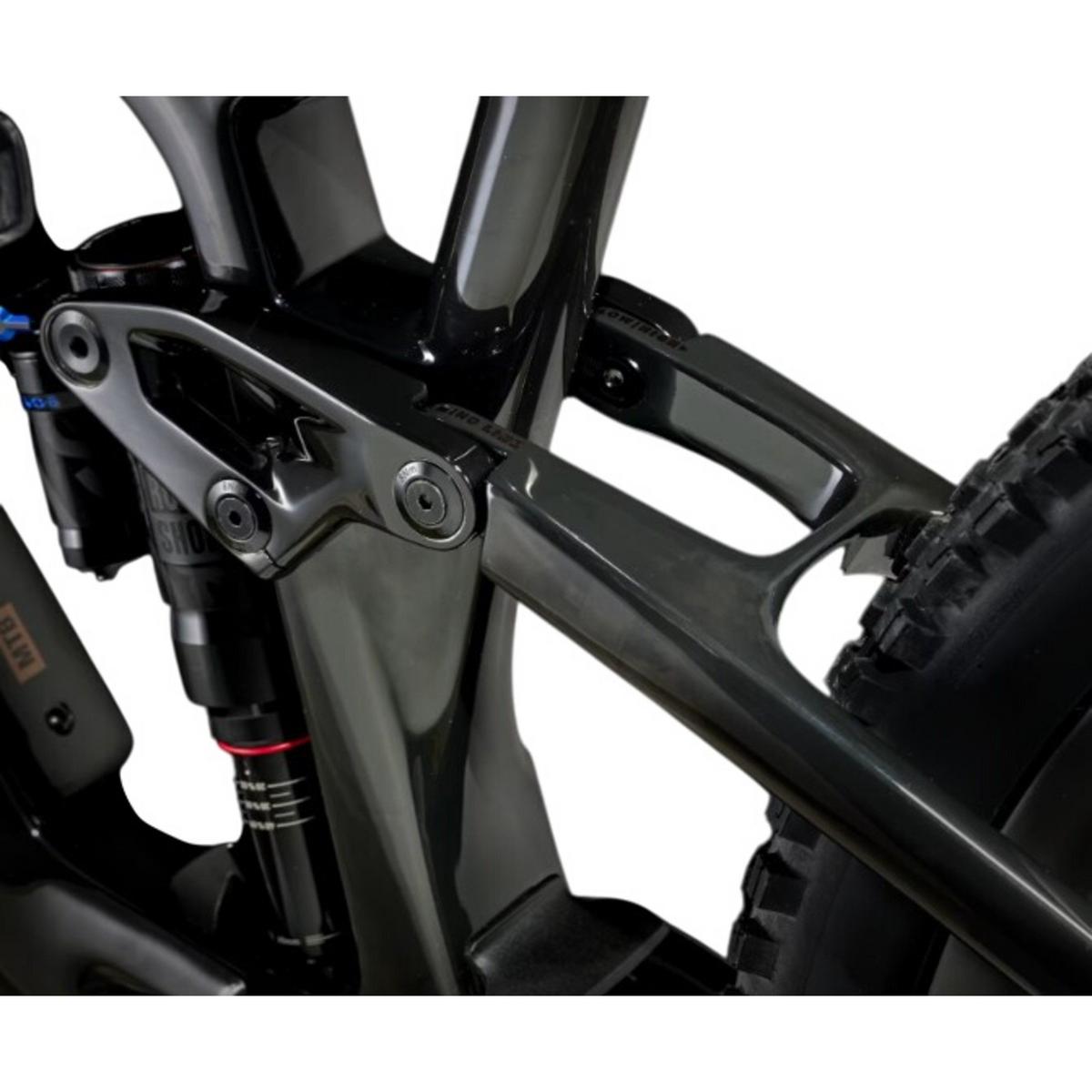 An OCLV Mountain Carbon frame equipped with an easily removable 360Wh battery and TQ harmonic pin ring transmission with a smart charging port, integrated LED display, and discreet handlebar remote. Plus, a 150mm RockShox Lyrik Select+ fork with DebonAir spring and Charger 2.1 RC damper, and 140mm RockShox Super Deluxe Select+ rear suspension. And don't forget the trusted performance of Shimano's clean shifting XT drivetrain.