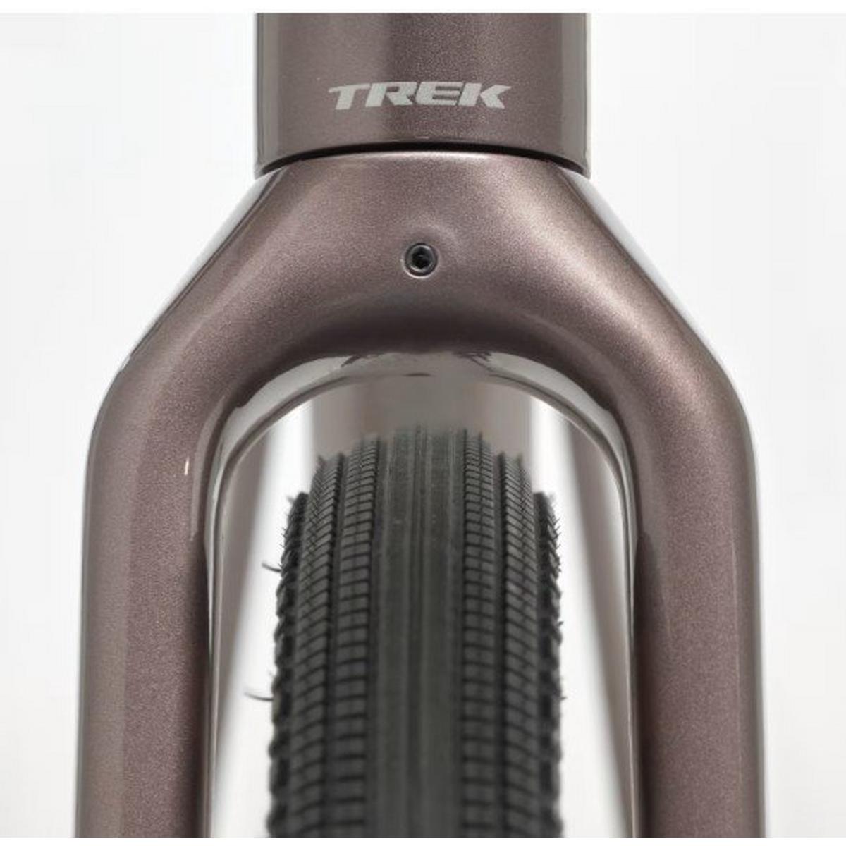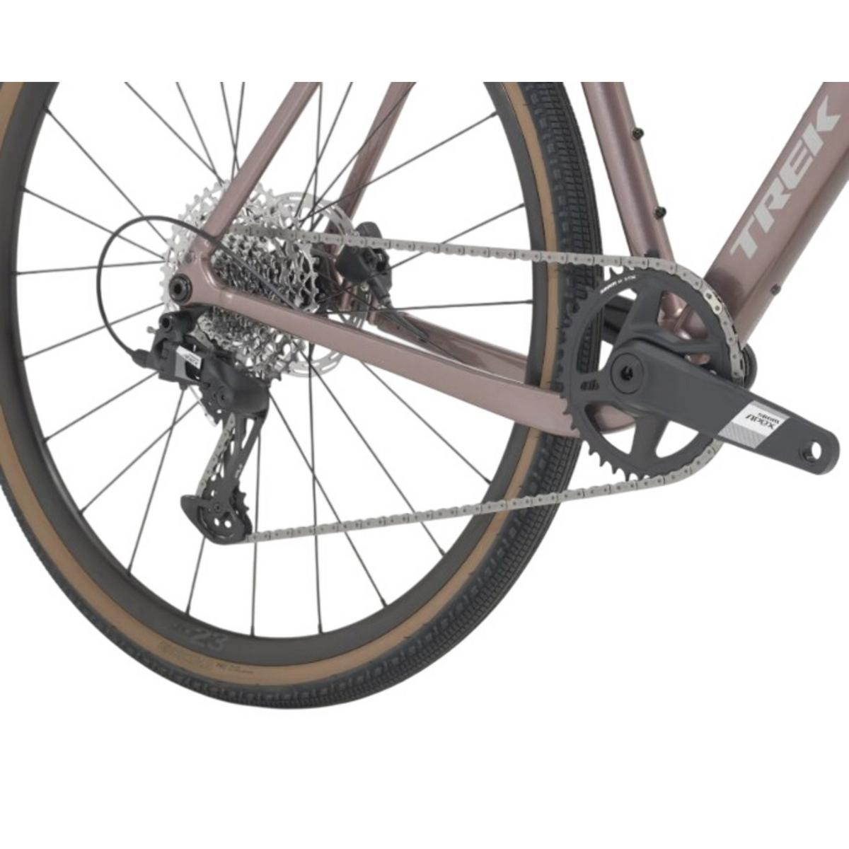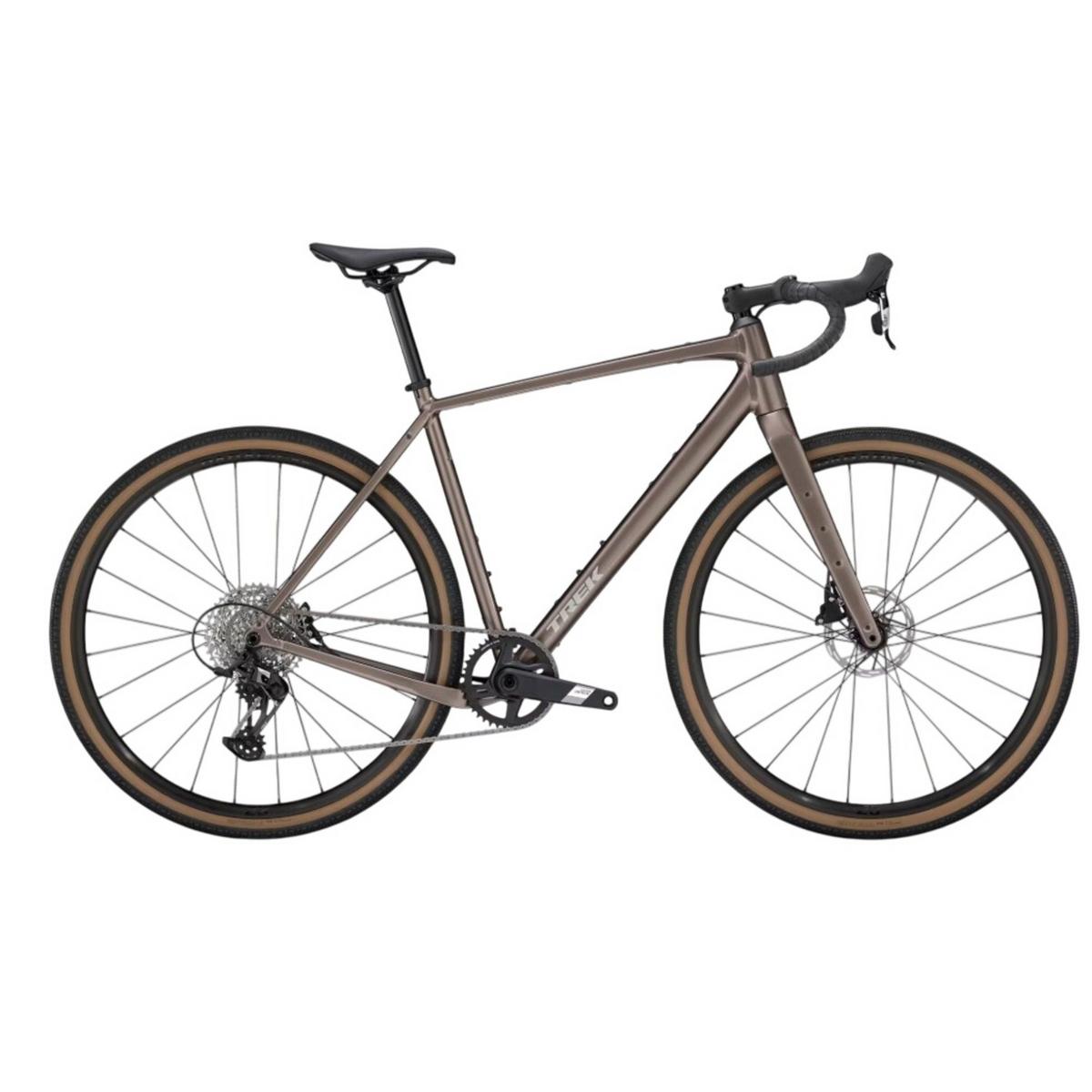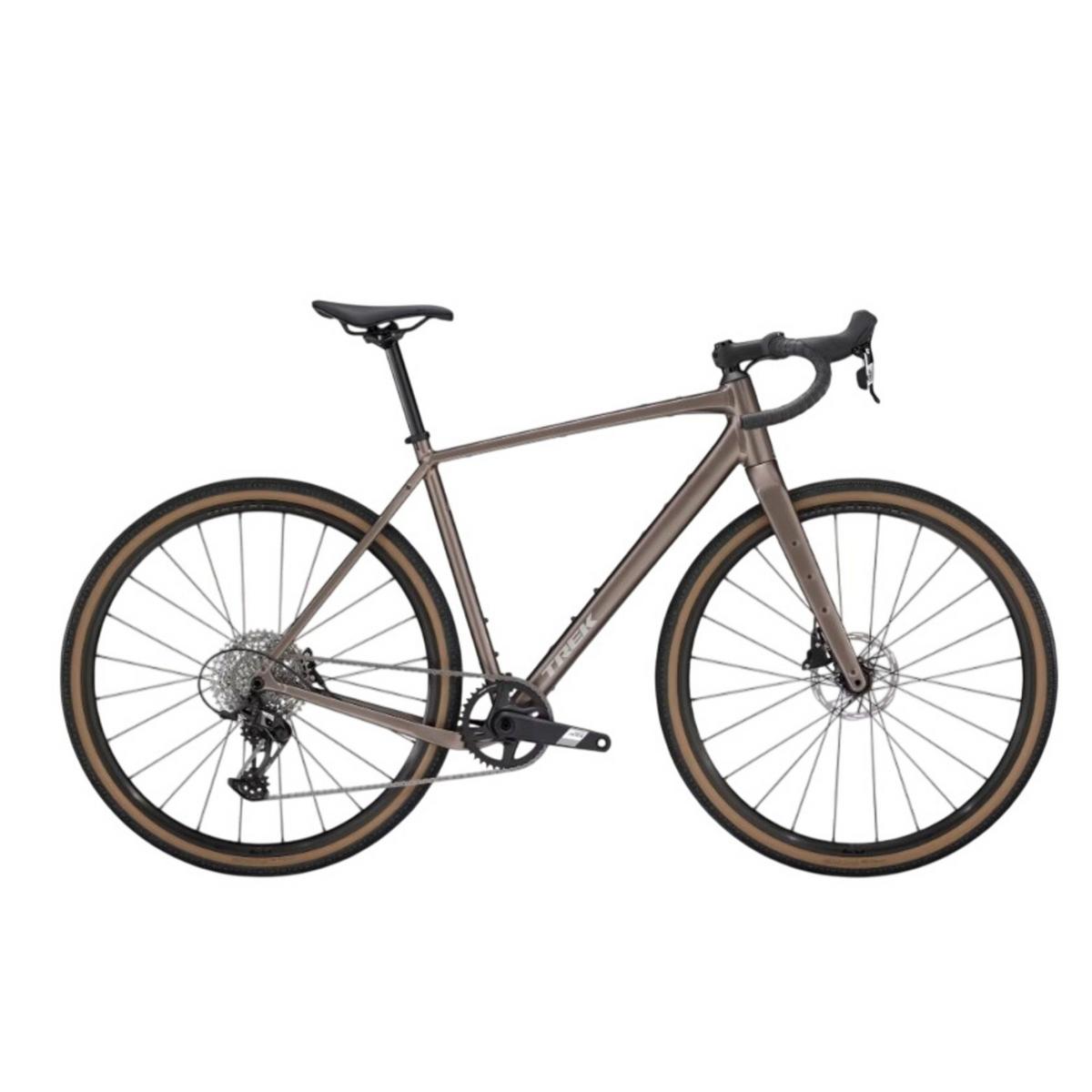 A 300 Series Alpha Aluminum frame with a full carbon fork, with clearance for up to 50mm tires. Upgraded SRAM Apex XPLR 12-speed shifting, hydraulic disc brakes, Bontrager Paradigm wheels with Bontrager Girona Pro Tubeless Ready tires, plus mounts for loading up with bags, racks, and gear.