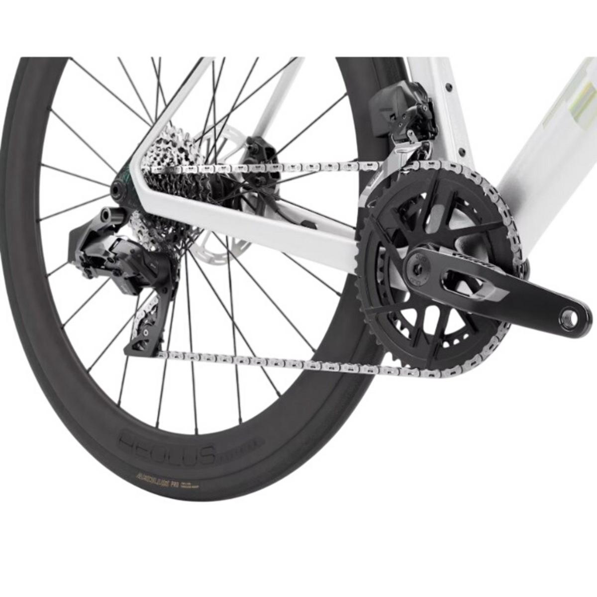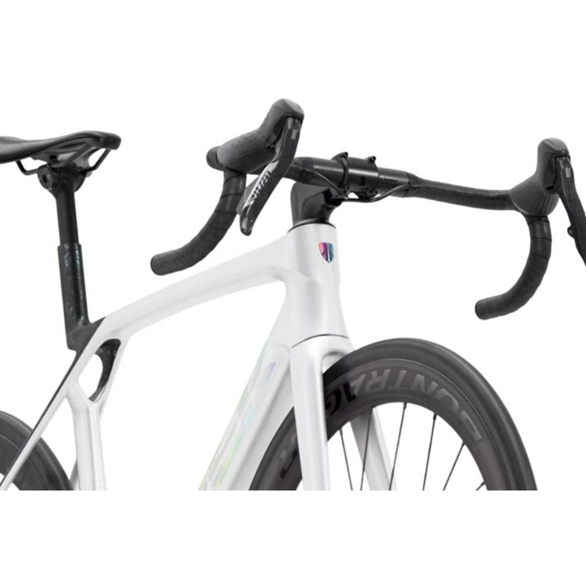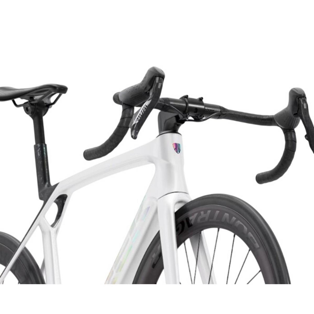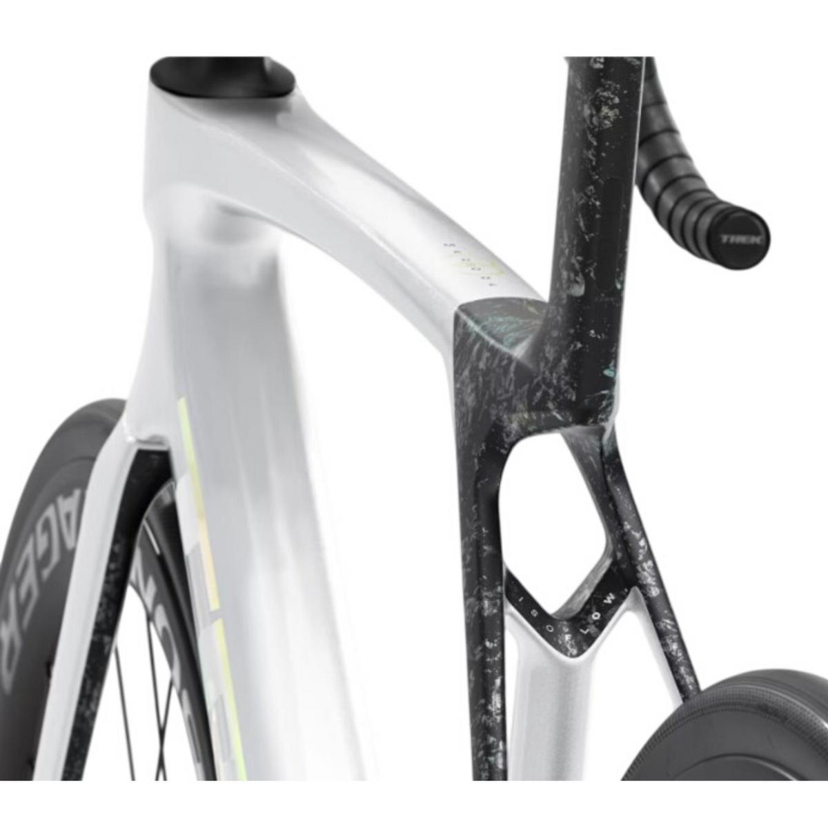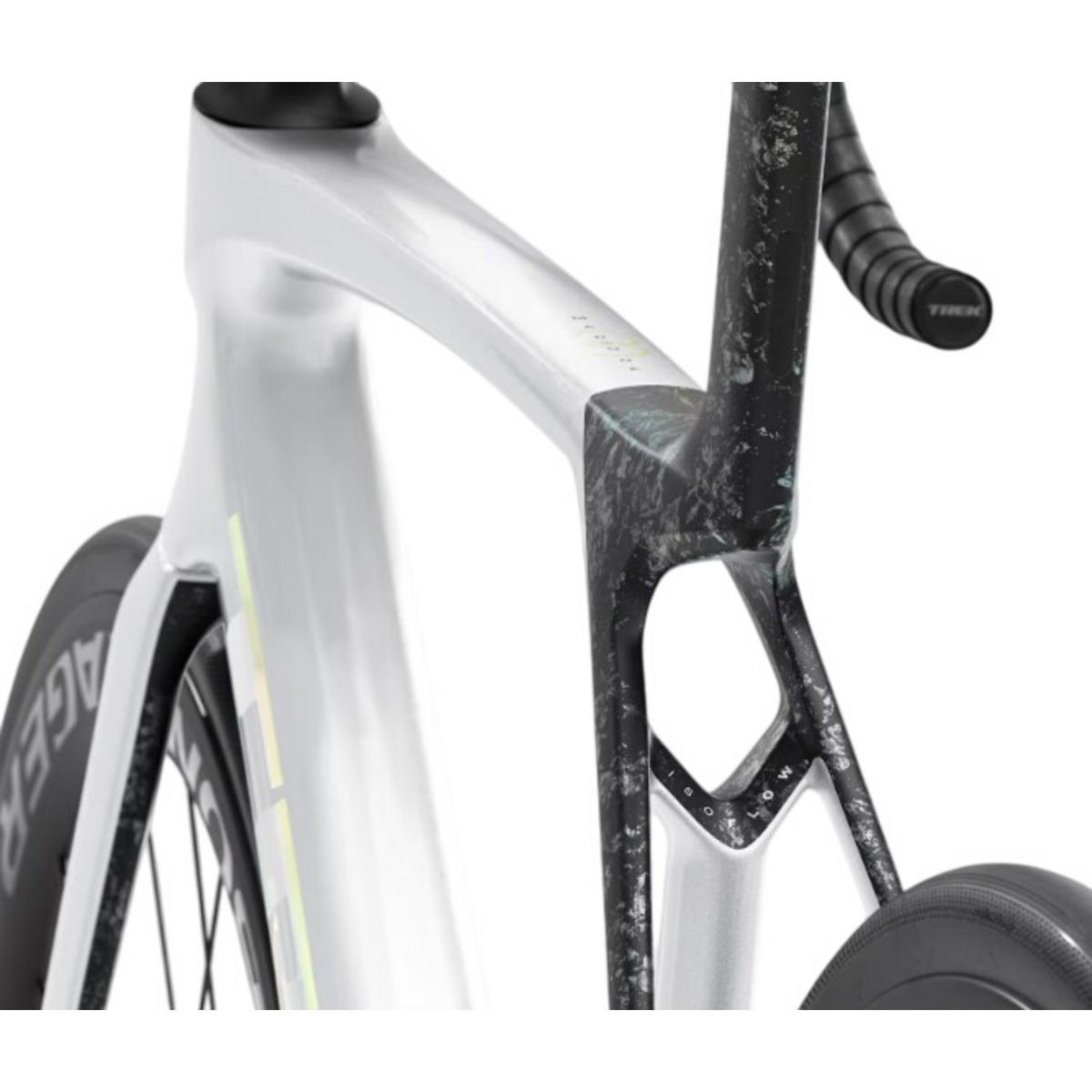 Madone SL 6 AXS Gen 8 is a lightweight aero road bike that brings elite racing tech to a lower price point with a more economical OCLV 500 Carbon layup than its SLR sibling. A SRAM Rival AXS E1 electronic groupset delivers lightning-fast electronic shifting, and pairs with alloy handlebars to keep the price down. Plus, it's topped off with carbon wheels for extra lightweight performance.