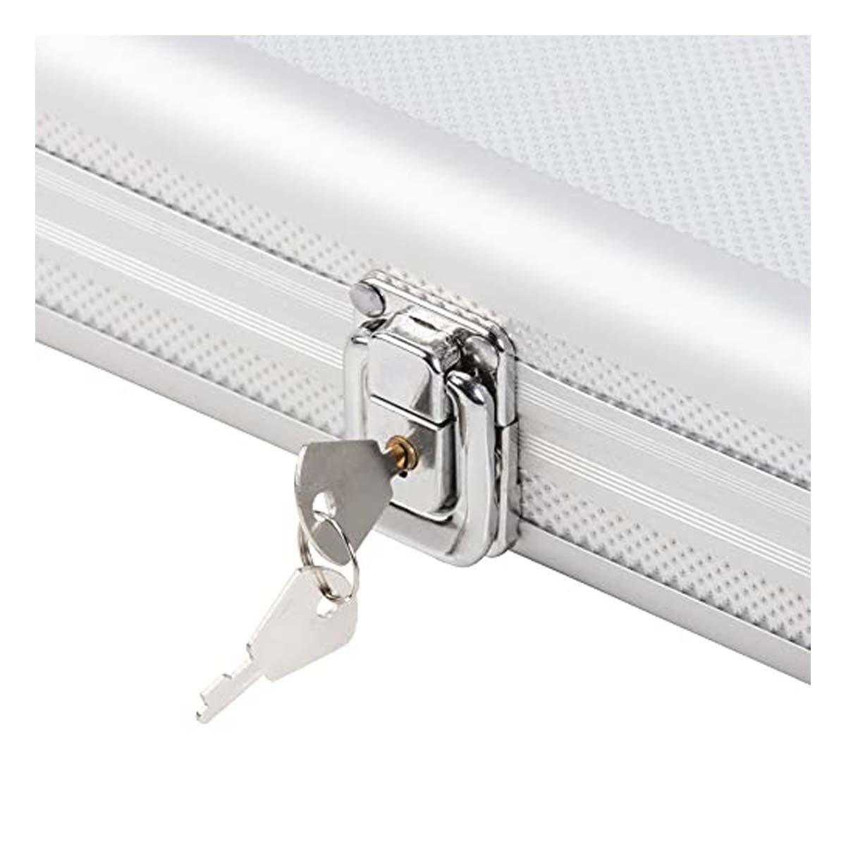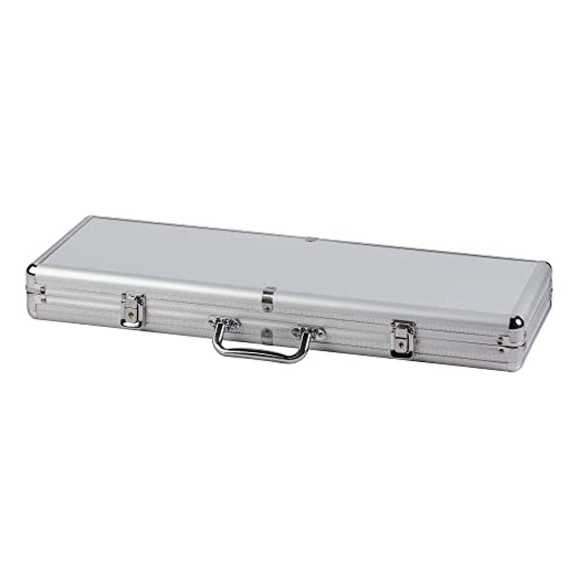 Carry the casino with you using the all-in-one Triumph 500-Piece Poker Set with Case. Safely transport the entire set, which includes 500 pieces of 11.5-gram poker chips, two decks of playing cards (white/black and white/red), dealer and blind chips, and five dice pieces. The chips come in an assortment of colors for realistic casino-style play including: green, red, blue, and white. The luggage-style, aluminum case features a carry handle and padded interior to easily and safely transport your set. The case, measuring 23” L x 10” W x 3” H, securely fastens and locks with a two-key set.