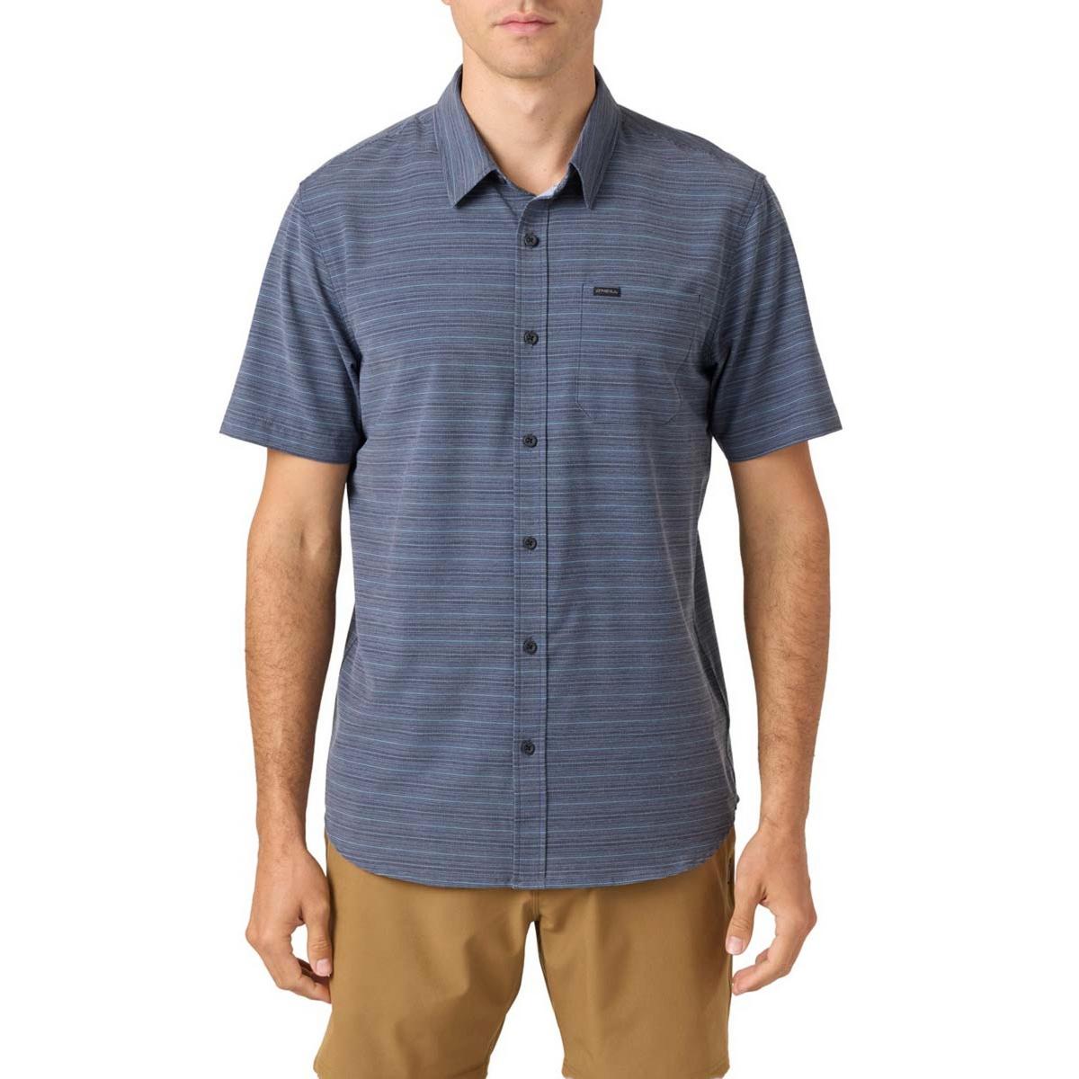 The Men's O'Neill TRVLR Traverse Relaxed Fit Button Up Shirt is the perfect blend of comfort, style, and practicality. This neat button-up shirt is designed with a relaxed fit, ensuring easy movement and a laid-back look. Made from premium quality fabrics, it offers superior softness and durability. Its classic design features a full button front closure, a standard collar, and a single chest pocket, providing a timeless appeal. The shirt also boasts the O'Neill TRVLR series' signature feature - a hidden passport pocket, making it an ideal choice for travel enthusiasts. The subtle pattern adds a touch of sophistication, making it versatile enough for both casual outings and semi-formal occasions. This shirt is available in various sizes and colors, catering to every man's preference. With the Men's O'Neill TRVLR Traverse Relaxed Fit Button Up Shirt, you get a piece that's not just about looking good, but feeling good and being ready for adventure as well.