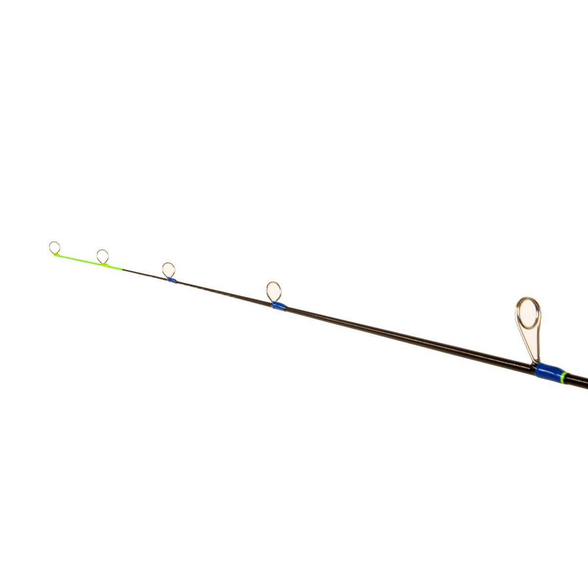 The Tuned Up Custom Precision Noodle Full Cork Handle Ice Rod is perfect for light-bite scenarios. Designed for use with lighter baits and jigs, this panfish ice rod features a light action tip to improve bite sensitivity so you'll be able to feel even small taps and up bites from crappie. The tip is colored with Hi-Viz Green so it more obviously stands out against the ice, allowing you to easily see the rod bend for visible bite detection. Recoil guides on this ice rod return to a neutral position after bending to improve the feel of the rod. A tapered spine and solid fiberglass construction provide enhanced strength, so you can fish knowing your rod will handle large crappies and bluegills as well as stand up to occasional bites from larger fish. Designed to offer the ultimate panfish experience without the need for a spring bobber, the Tuned-Up Custom Precision Noodle Ice Rod delivers dependable performance to catch more fish this season.