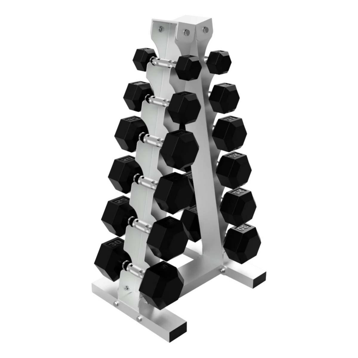 {"reviews":[],"offset":0,"limit":10,"total":0}"Full Description:\nThe VERTPAC-HDR30 offers another efficient way to store your dumbbells. Our USA GADR-6 “A” frame rack is vertically loaded with 6 pair of iron hex dumbbells (IHD) from 5 lb to 30 lb, (5 lb jumps) in a compact, 20” footprint.\n\nSpecifications:\n\u003cul>\n\u003cli>Stand Weight: 33 lb\u003c/li>\n\u003cli>Stand Length: 20 in.\u003c/li>\n\u003cli>Stand Width: 15 3/4 in.\u003c/li>\n\u003cli>Stand Height: 38 in.\u003c/li>\n\u003cli>Dumbbell Weight (total): 210 lb\u003c/li>\n\u003c/ul>\n"