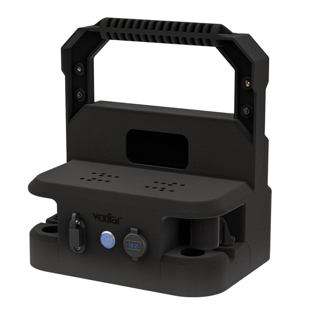 The new Vexilar Vision Live Imaging Sonar System Shuttle is designed to convert your favorite Garmin, Humminbird, or Lowrance live sonar system for ice fishing. Keep your live sonar system compact and organized with this impact resistant, injection molded ABS ice shuttle, built to handle extreme temperatures every season. This shuttle has room to grow with two threaded accessory mounts for building your ideal accessory setup with an adjustable rod holder included. Terminal blocks make it easy to install sonar systems and accessories. Including two USB-C, one USB-A accessory charging port, and a quick-connect pulug, you'll enjoy maximum convenience. With new features like integrated feet to keep the unit off the ice, enclosed cable compartment, and removable rear panel for easy access, moving a live sonar setup from a boat to an ice fishing shuttle is straightforward and easy with the Vexilar Vision Live Imaging Sonar System Shuttle.