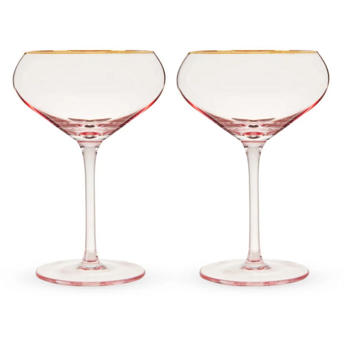 {"reviews":[],"offset":0,"limit":10,"total":0}"Full Description:\nLife looks a lot rosier when you sip from these gold-rimmed coupe glasses. Tinted a delicate pink, these crystal glasses are the perfect vessels for your favorite cocktail.\n\nFeatures:\n\u003cul>\n\u003cli>Set of 2\u003c/li>\n\u003cli>Crystal\u003c/li>\n\u003cli>11.5 oz capacity\u003c/li>\n\u003cli>Hand wash recommended\u003c/li>\n\u003c/ul>\n\nSpecifications:\n\u003cul>\n\u003cli>Dimension: 8.22 in X 11.17 in X 5.25 in\u003c/li>\n\u003cli>Weight: 0.55 lb\u003c/li>\n\u003c/ul>\n"