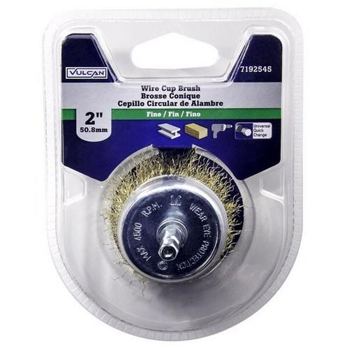 The Vulcan Coarse Grade Wire Wheel Brush is made with tough, durable carbon steel wire. Usage for removal of paint, rust and scale on wood, metal and plastic.