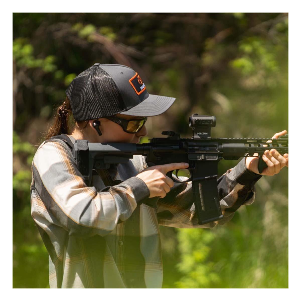 The Disrupter is designed to protect your hearing by cancelling dangerous-level noises, such as shots at the gun range or while target shooting. At the same time, the earbuds can be used to enhance desired environmental sounds or deliver superior audio originating from a cell phone, tablet, or other device through Bluetooth connectivity. This makes the Disrupter a completely comprehensive noise protection and a best-in-class sound enhancement solution for anyone with an active lifestyle — on the range, in the gym, or deep in the wilderness.