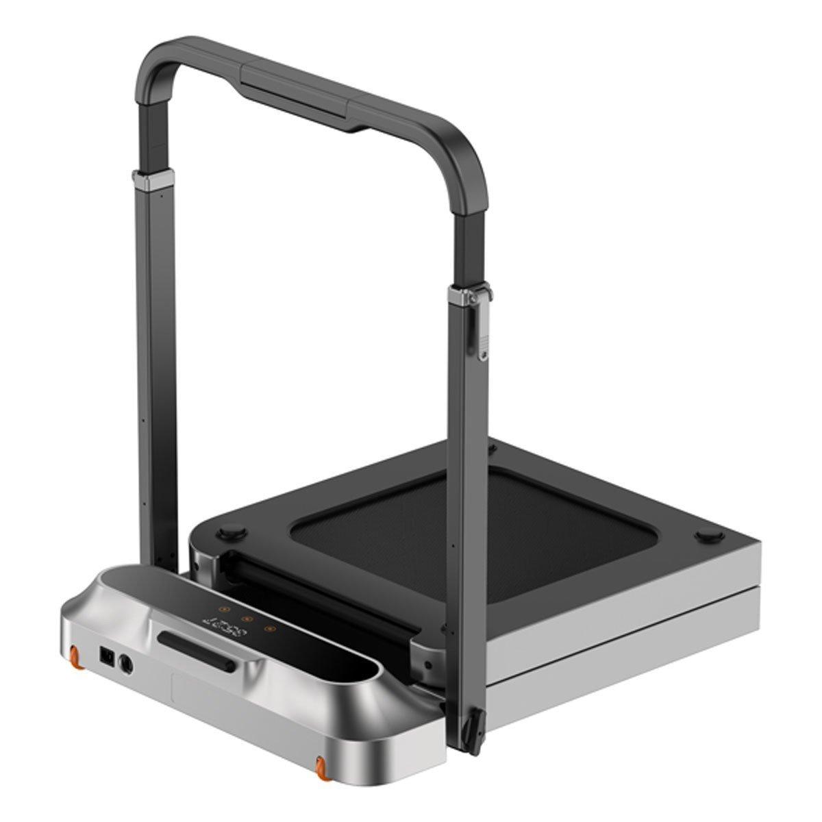 The R2 is equipped with a brushless motor that reduces noise level up to 75 decibels. Through the downloadable KS Fit App, control your walking speed with SWS Smart Walk Sensor technology. In auto mode, the walking belt's 8 sensor system automatically adjusts the speed from where you land on the walk/run track, or, simply manually adjust walk/run speed with the remote control. Monitor speed, time, steps, running distance, and calores burned. Adjustable height hand rail aids in stability while walking or running, and folds down along the frame when not in use.