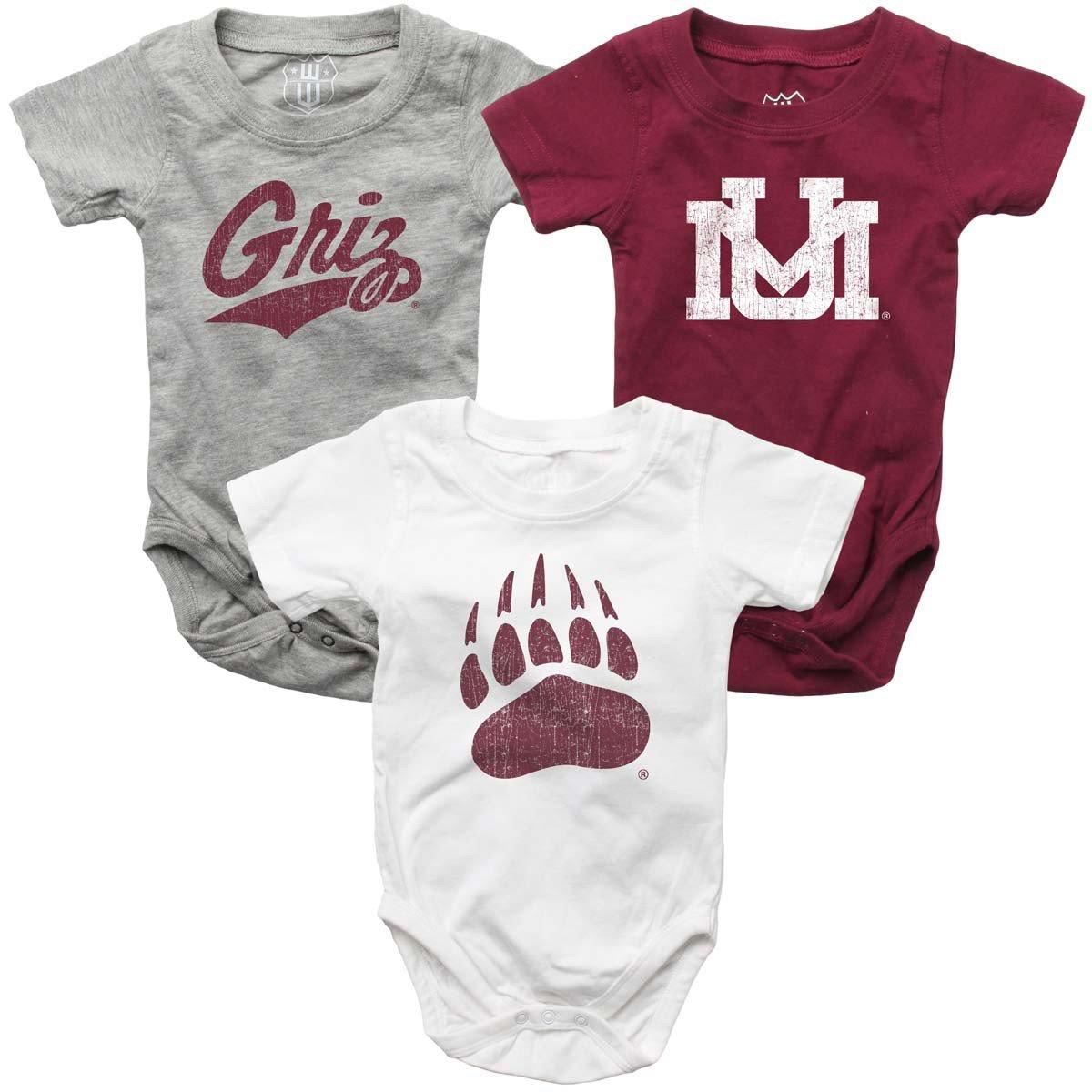 Wes and Willy Infant Montana Grizzlies Hopper Onesie 3 Pack