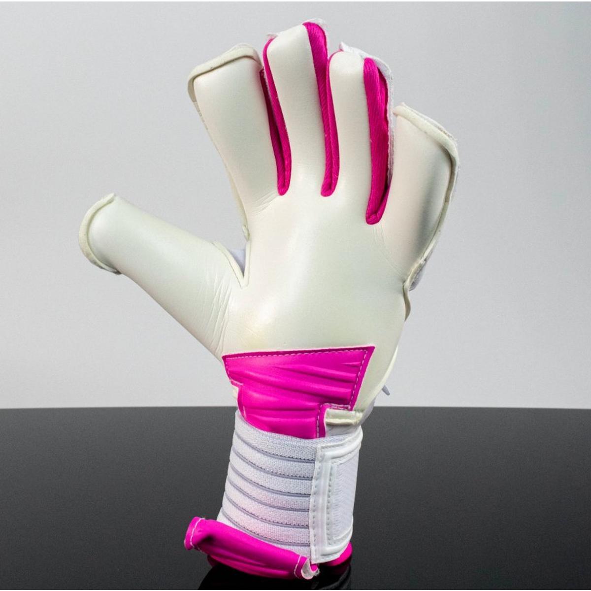 The Phantom ™ Lotus, our next addition to the Phantom ™ Series, now in a bright and clean white design with bold pink accents. Featuring our top White Monster Grip Latex along with a double elastic wrist strap, an ultra flexible backhand, internal silicone grip, and removable finger saves for the next chapter in the Phantom ™ Series!