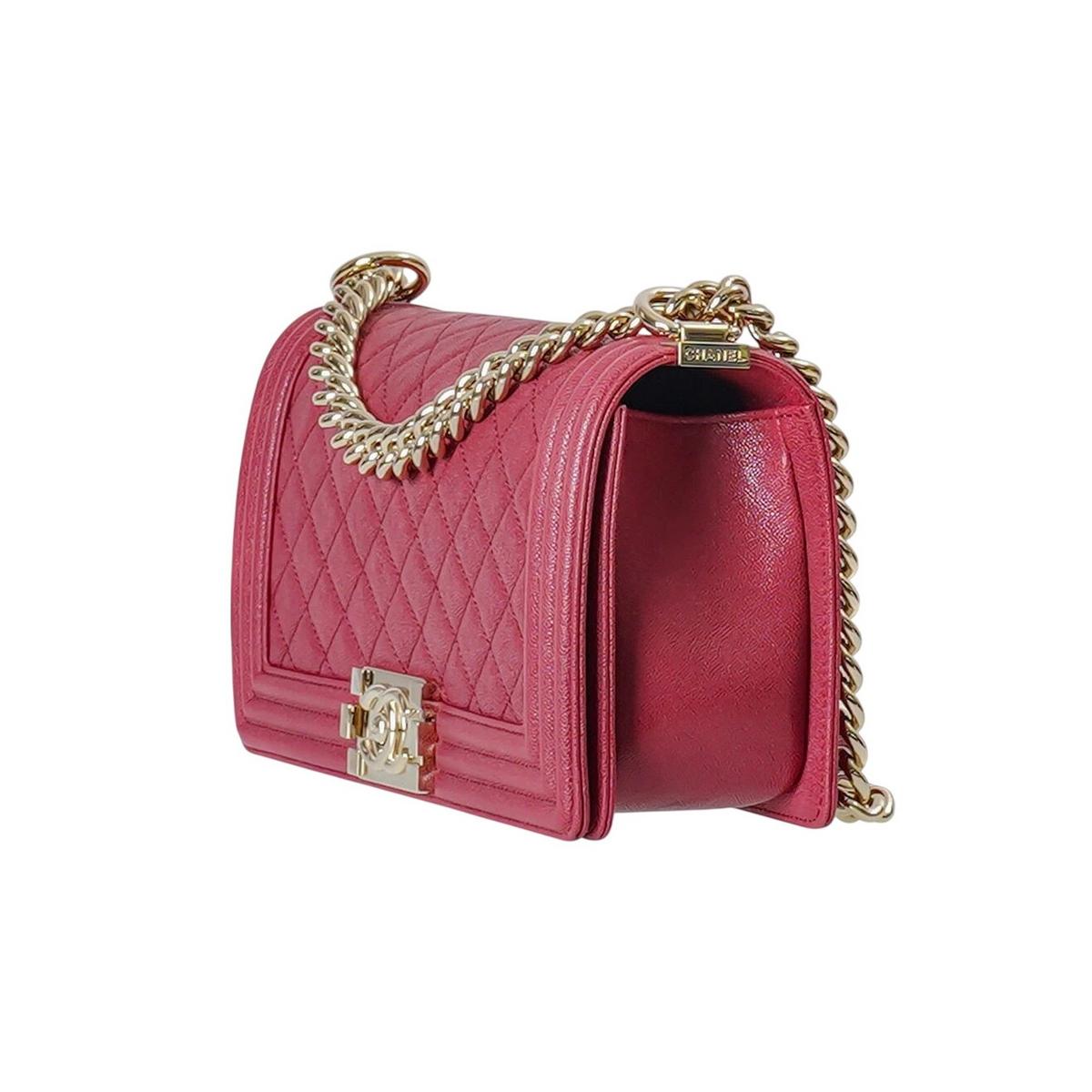 The Chanel Boy Bag Medium in pink quilted caviar leather is a bold yet refined statement piece, known for its structured silhouette and modern edge. Crafted in durable caviar leather with the iconic Boy push-lock, this style offers both everyday wearability and timeless Chanel appeal.