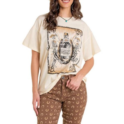 Women's Rock & Roll Denim Whiskey Skeleton T-Shirt