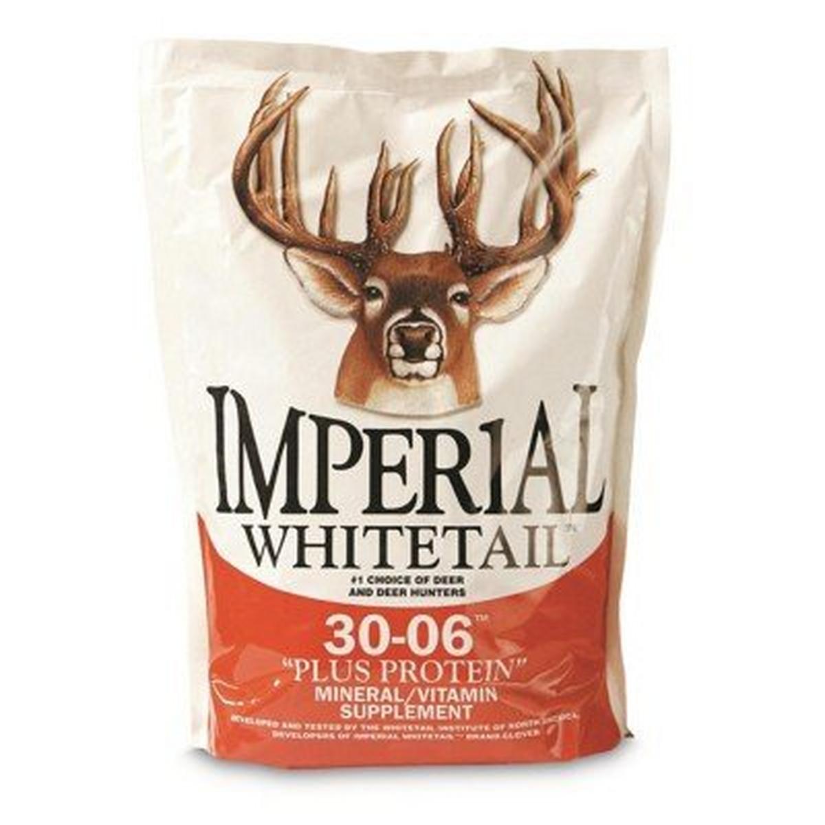 30-06 products are true high quality mineral and vitamin supplements not another glorified salt lick. Many minerals are necessary for deer health and maximum antler growth. 30-06 and 30-06 Plus Protein incorporate all of the essential macro and trace minerals needed along with vitamins A D and E. 30-06 and 30-06 Plus Protein were developed by Whitetail Institute professionals to maximize both performance and digestibility. Of course no supplement will work if the deer don't find and eat it. By including our exclusive scent and flavor enhancer we make sure that deer will use 30-06 products more quickly and more consistently. Deer love it so much they will literally dig holes in the ground to get to it. And you'll love it too because it is so easy to use. Deer naturally get most of their minerals from the soil so 30-06 and 30-06 Plus Protein are used by lightly mixing them with the soil. All you have to do is use a rake or shovel to clear an area 2 to 3 feet in diameter and then mix in the 30-06. Supplementation with either 30-06 or 30-06 Plus Protein can help ensure a healthy herd and can help bucks maximize their antler potential. CAUTION - 30-06 products are such powerful attractants that some states consider them bait. Consult your local game laws before hunting over the site. 20 lb. bag.