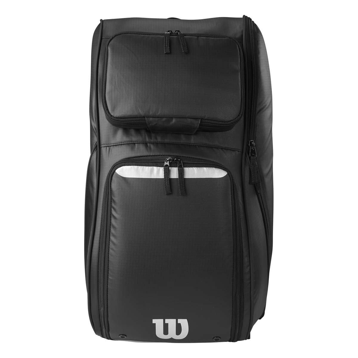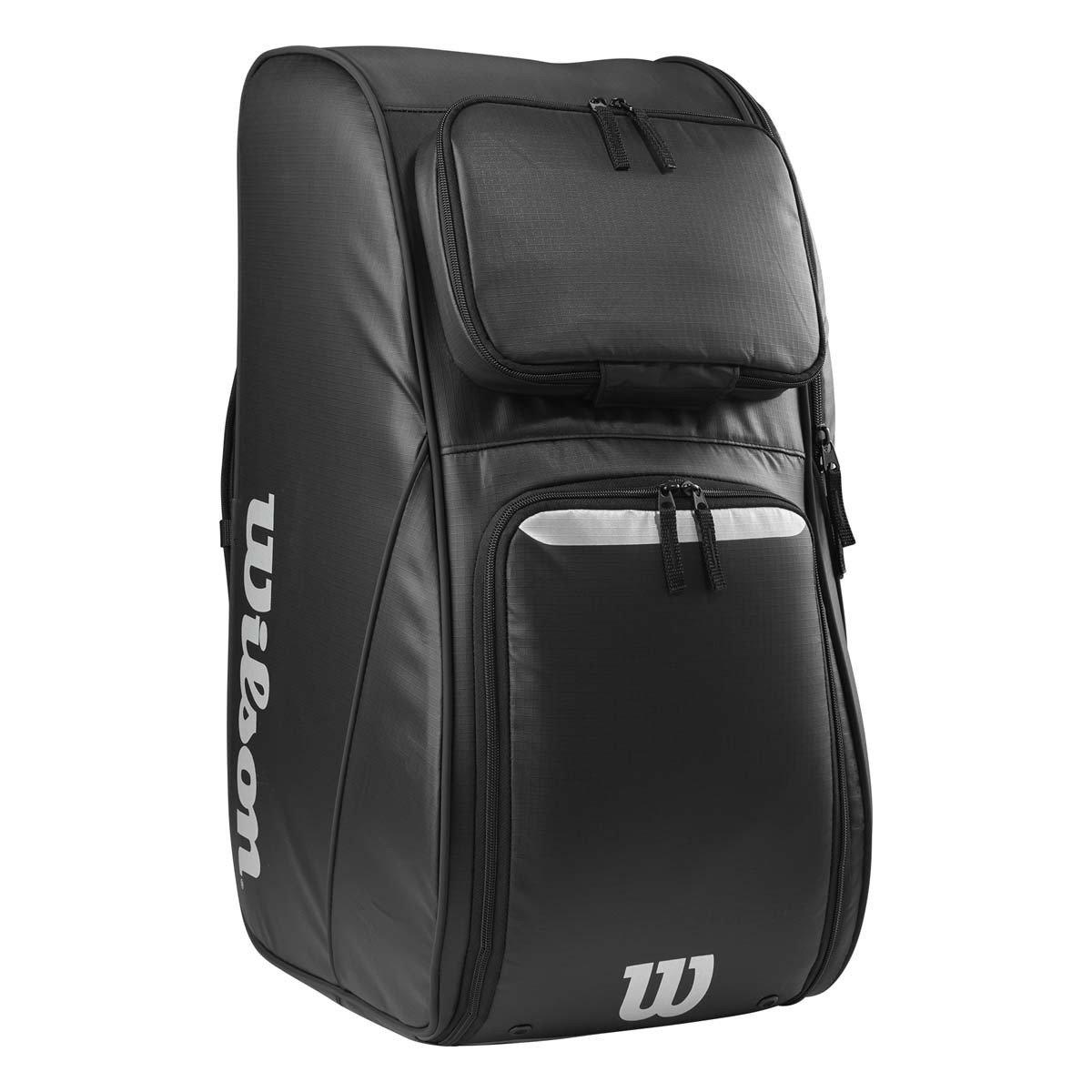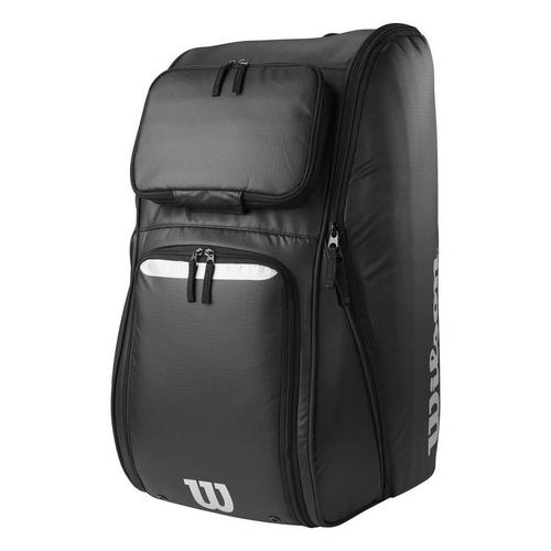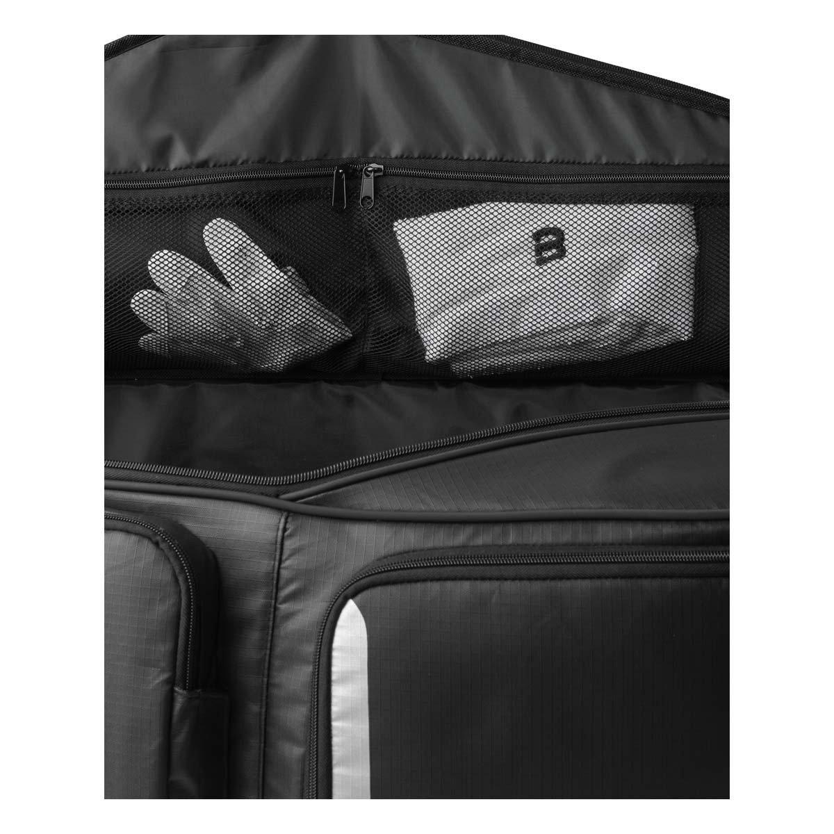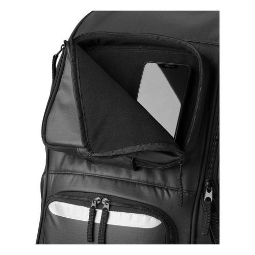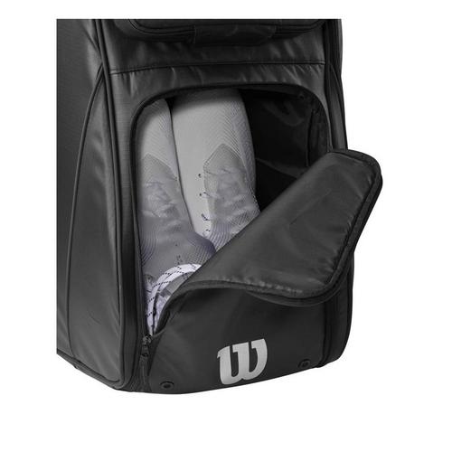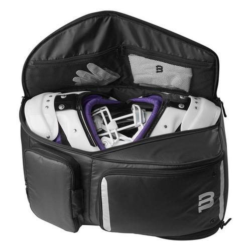 This Wilson player equipment bag is perfect for any football athlete that needs a single bag for their kit and personal items. With ample storage space, this equipment bag can store football shoulder pads, a helmet, a pair of shoes, gloves and have room to spare for personal items and valuables. This player bag features a main storage compartment, a vented shoe pocket, a fleece-lined personal effects pocket and a interior zippered mesh pouch for gloves. This water-resistant, heavy-duty football player bag can be worn as a backpack, with padded adjustable shoulder straps and sternum strap for extra support, making this bag perfect for any athlete trying to easily transport their gear.