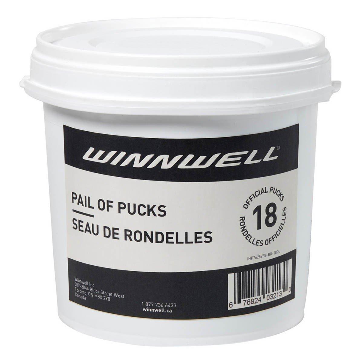 {"reviews":[],"offset":0,"limit":10,"total":0}"Full Description:\nThe black puck from Winnwell is regulation size and weight, and can be used for practices, games or out on the pond.\n\nFeatures:\n\u003cul>\n\u003cli>Pail of 18 Hockey Pucks\u003c/li>\n\u003cli>Convenient easy to carry pail\u003c/li>\n\u003cli>Total package weight 108 oz\u003c/li>\n\u003cli>Solves storage needs\u003c/li>\n\u003cli>Acts as a helpful organizer\u003c/li>\n\u003c/ul>\n\nSpecifications:\n\u003cul>\n\u003cli>Color: Black\u003c/li>\n\u003cli>Brand: Winnwell\u003c/li>\n\u003c/ul>\n"