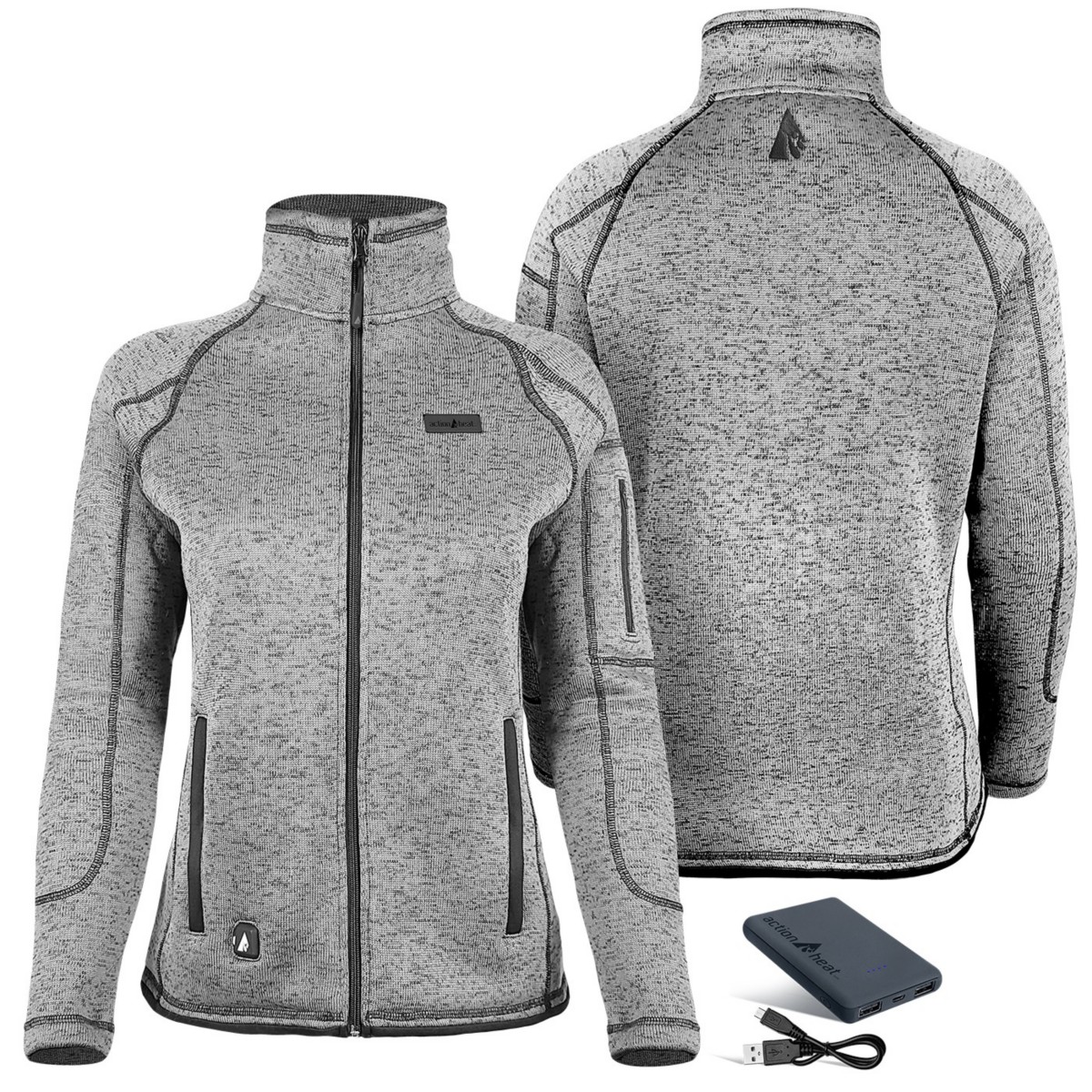 Experience the perfect balance of comfort and advanced heating technology with the Women's ActionHeat 5V Battery Heated Sweater Jacket. Crafted from lightweight, soft, and wind-resistant fleece, these jackets offer unrivaled versatility for any adventure or weather condition. Powered by patented 5V signal technology, they can be paired with most 5V batteries of your choice. The included ActionHeat 5V Power Bank 6000mAh not only powers your garment but also doubles as a convenient charger for your phone, tablet, or other USB-charged devices. Stay warm with the built-in heating panels and ActionFlex material, providing lightweight coziness and unrestricted movement. Embrace extended time in the great outdoors in any weather with the Women's ActionHeat 5V Battery Heated Sweater Jacket.