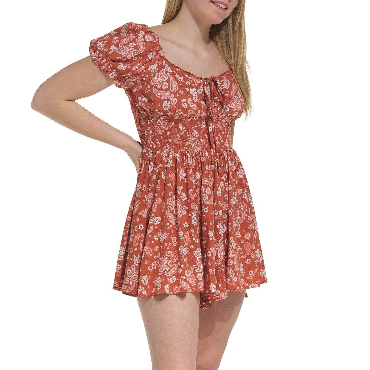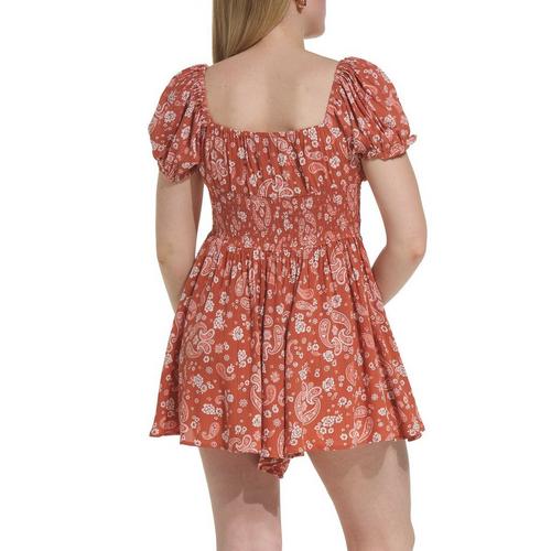 Playful and flattering, this puff sleeve romper is designed to make a statement. The smocked bodice offers a comfortable, flexible fit while the feminine sleeves and breezy silhouette make it perfect for sunny days and weekend outings.