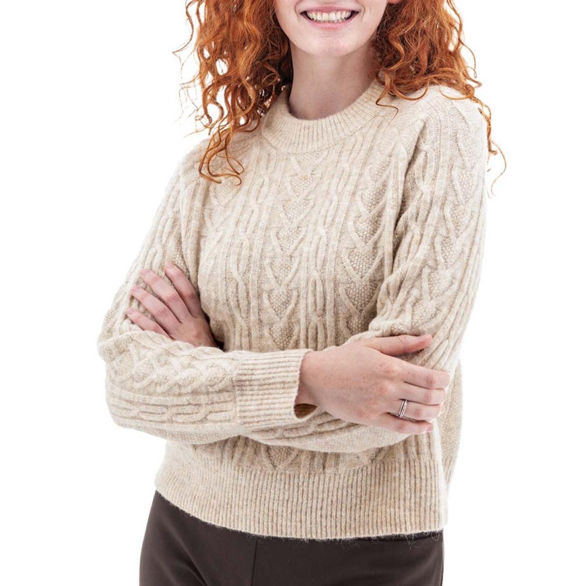 The Castella Fisherman Sweater is a luxury mid-weight style that makes winter feel a bit brighter. A heavenly soft blend of fibers that utilizes eco-friendly recycled polyester and wool. The result is like a cloud against the skin - you'll never want to wear anything else! The classic design is sure to shine in your closet year after year because it defies trends. The cable-knit body and sleeves are finished with ribknit around the crew neck, cuffs, and sweep. Polished and elegant, it elevates any outfit it is paired into.
