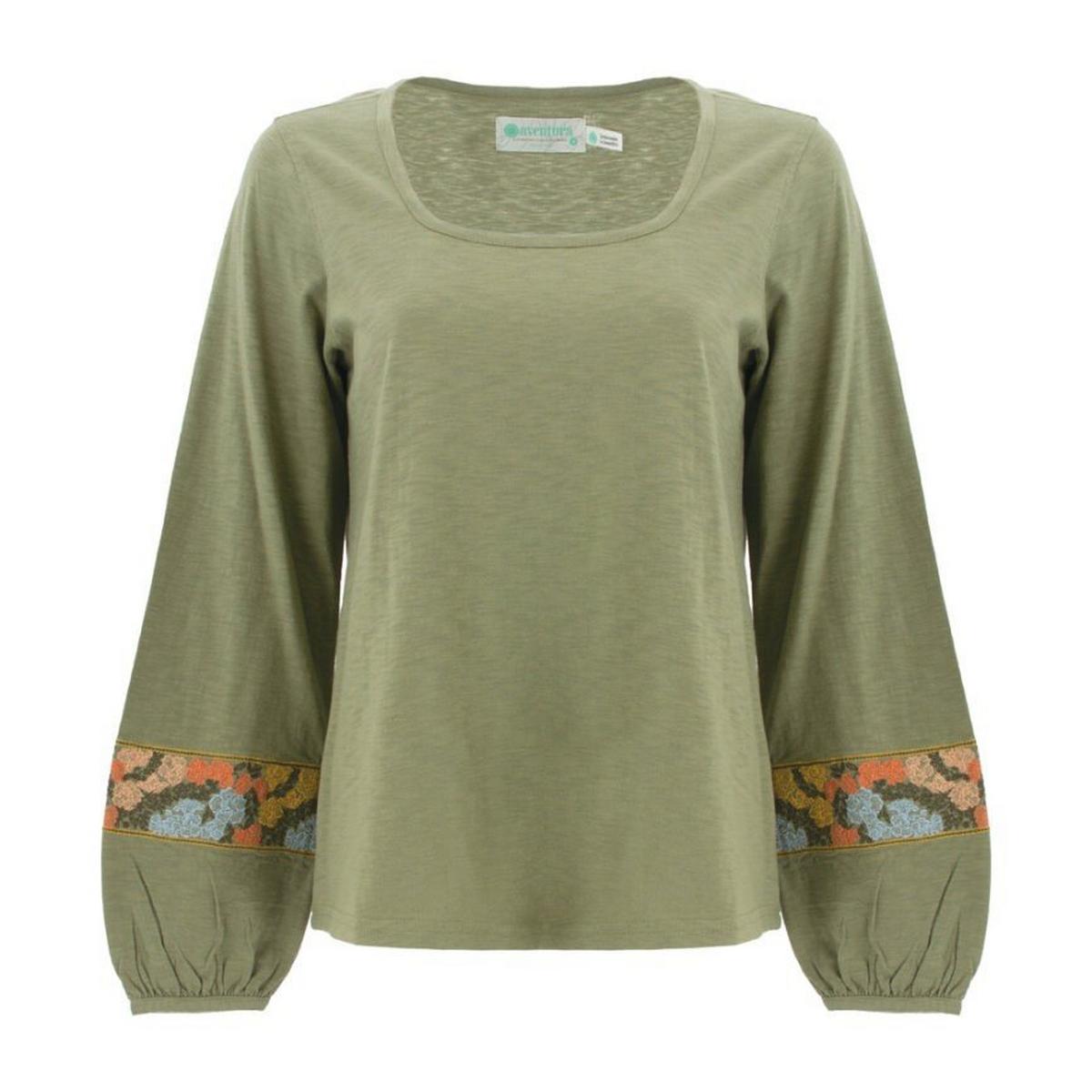 The first thing you may notice about the Elsinore Long Sleeve Top (besides the beautiful floral embroidery on the arm) is how soft it is. Crafted from a sustainable blend of organic cotton and TENCEL™; Modal into a slub jersey, the fabric is irresistible! Plus, it is better for the environment than if using conventional cotton or modal. Win-win! The feminine square-shaped neck is pretty without being overly revealing. The slight bubble sleeve and relaxed fit of the top ensure comfort. Finally, the embroidery detail is rich and thoughtful ?? almost like wearing a bracelet.