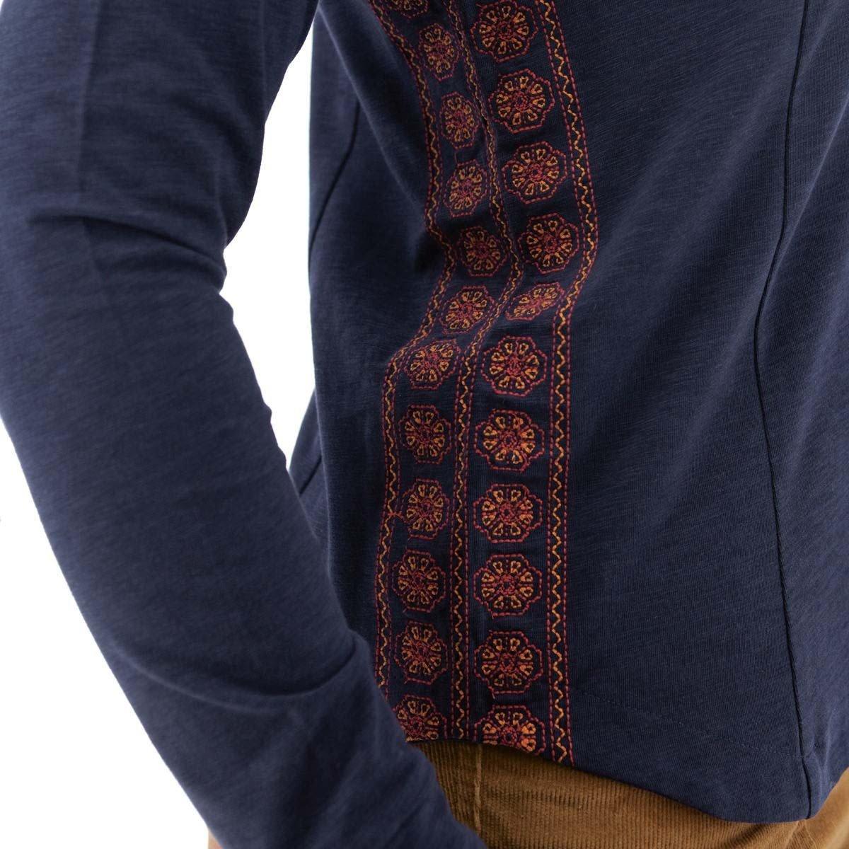 Combining flattering details with incredible (and eco-friendly!) fabric, the long-sleeve Mandy Embroidered Henley is a true winner. Princess seams and a shirttail hem are universally flattering, accentuating the body's curves. Soft with the slightest give, this slub knit jersey was created with a blend of organic cotton, TENCEL™ Lyocell, and a touch of spandex. Organic cotton and TENCEL Lyocell prove to be better for the environment than their conventional counterparts while leaving you with only the silky soft benefits. Finally, a beautiful side panel accentuated by floral embroidery adds a feminine touch.