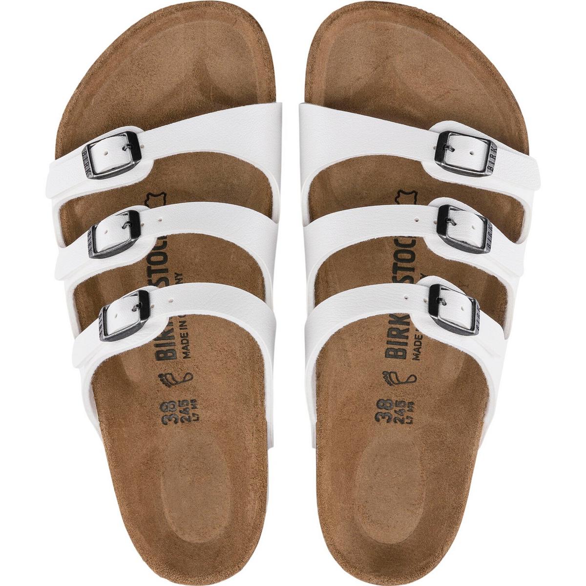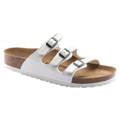 The BIRKENSTOCK Florida Soft Footbed Women's Sandals are a stylish, modern sandal with the support and comfort you expect from BIRKENSTOCK. With three, buckled straps across the foot, the BIRKENSTOCK Florida sandals offer a custom and secure fit, while BIRKENSTOCK's signature contoured cork footbed shapes to your foot for supportive comfort all day long. Plus, the BIRKENSTOCK Florida sandals feature an extra layer of soft foam cushioning to help absorb shock while walking. The BIRKENSTOCK Florida sandal's upper is super-soft next to your skin while also offering durability for extended wear. You'll enjoy style and comfort with the BIRKENSTOCK Florida Soft Footbed Women's Sandals