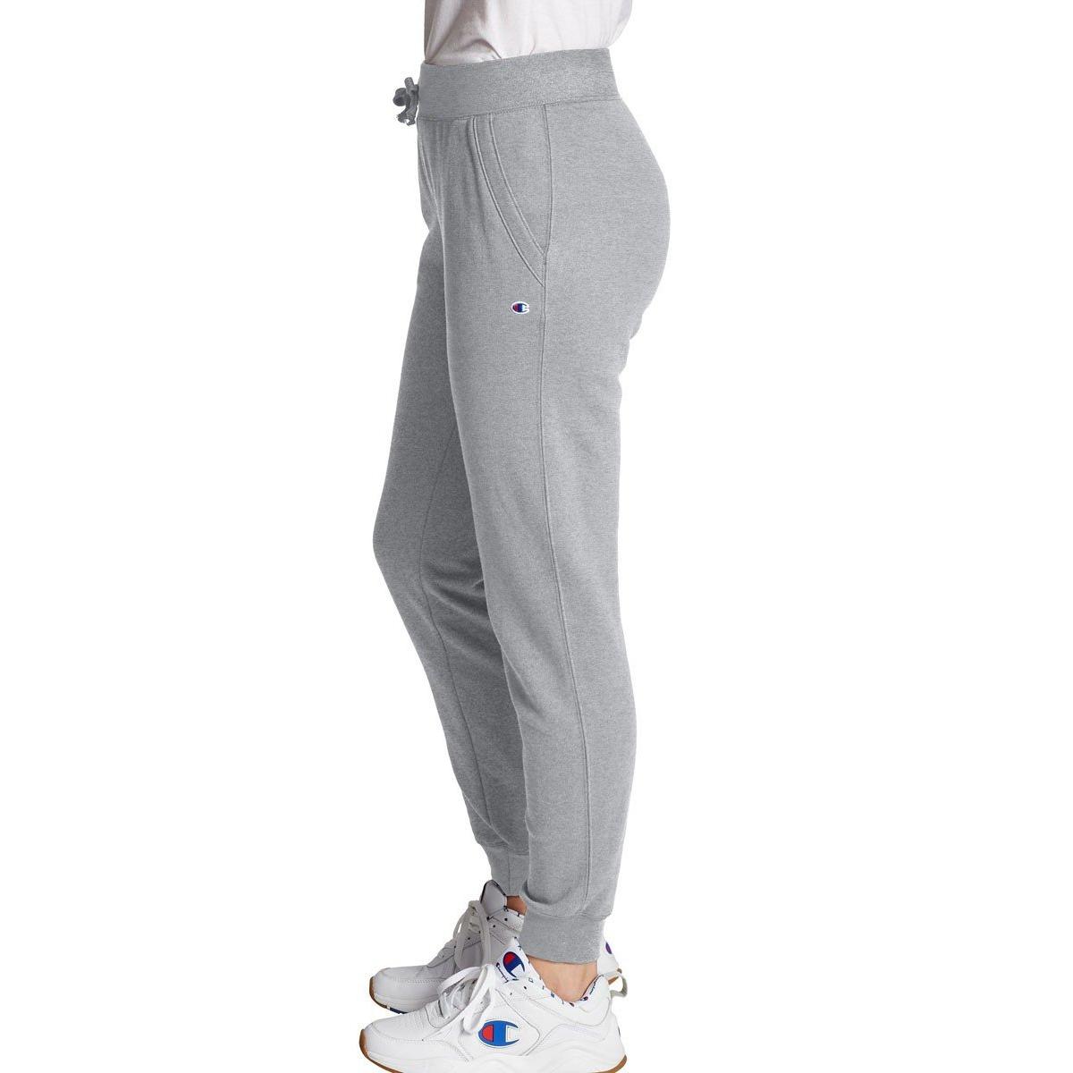The Women's Champion Powerblend Cotton Joggers offer a comfortable contoured pant that is fitting from the waist to the ankle. The ribbed waistband and cuffs on these Champion joggers help to hold a secure fit and trap in heat while still feeling breathable and flexible wherever you wear them. Front pockets with ribbed detailing allow for quick storage access while on the go for smaller items like your phone. The drawcord on these Champion Powerblend joggers offers an adjustable tightness around the waist that you can stretch and loosen to your liking. Rep the Iconic Campion brand with the "C" patch on the left hip that everyone knows. Stay hip, comfortable, and sporty in your new Women's Champion Powerblend Cotton Joggers.