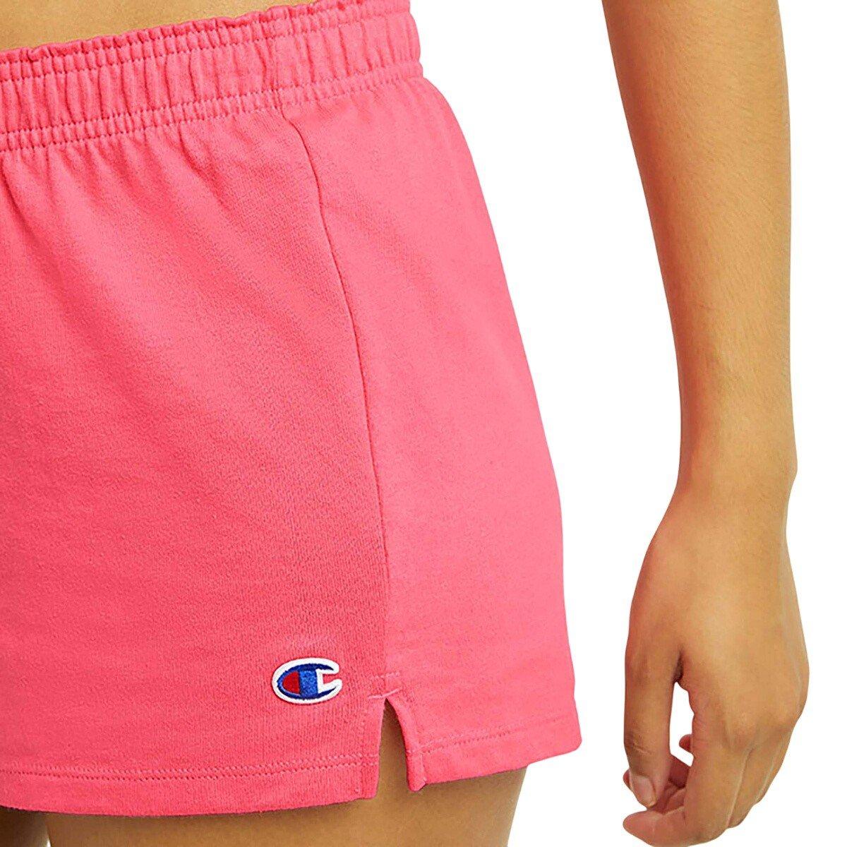 The Women's Champion Practice Shorts are an affordable pair of training shorts that are perfect to wear to practice or while lounging around the house. Made from cotton, the Champion practice shorts are super soft and durable, while the elastic waistband offers a secure, comfortable fit. You can fold over the waistband on these Champion practice shorts to show off the repeating logo that's on the inside of the waistband. For an updated look, the Champion practice shorts have a vented hem too. Stay comfortable in the Women's Champion Practice Shorts.