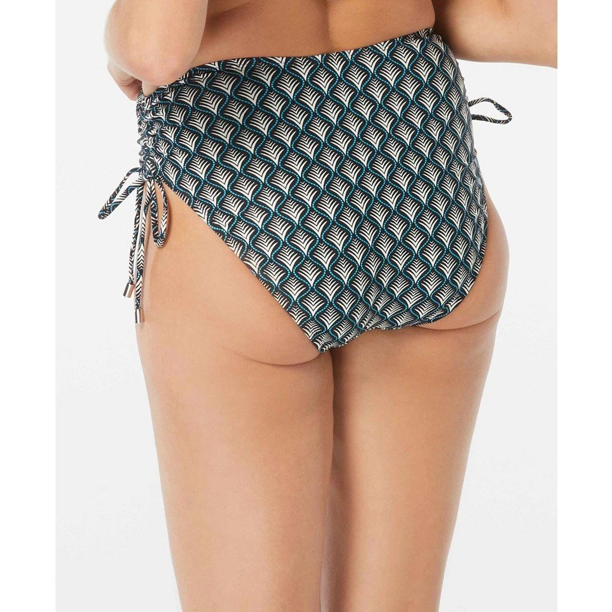 A classic high waisted bikini bottom gets a shirred upgrade for a femme and flirty silhouette. The Coco Reef Inspire Shirred High Waist Bikini Bottom in a fun, abstract, oasis inspired print features drawstring sides and high leg cut.
