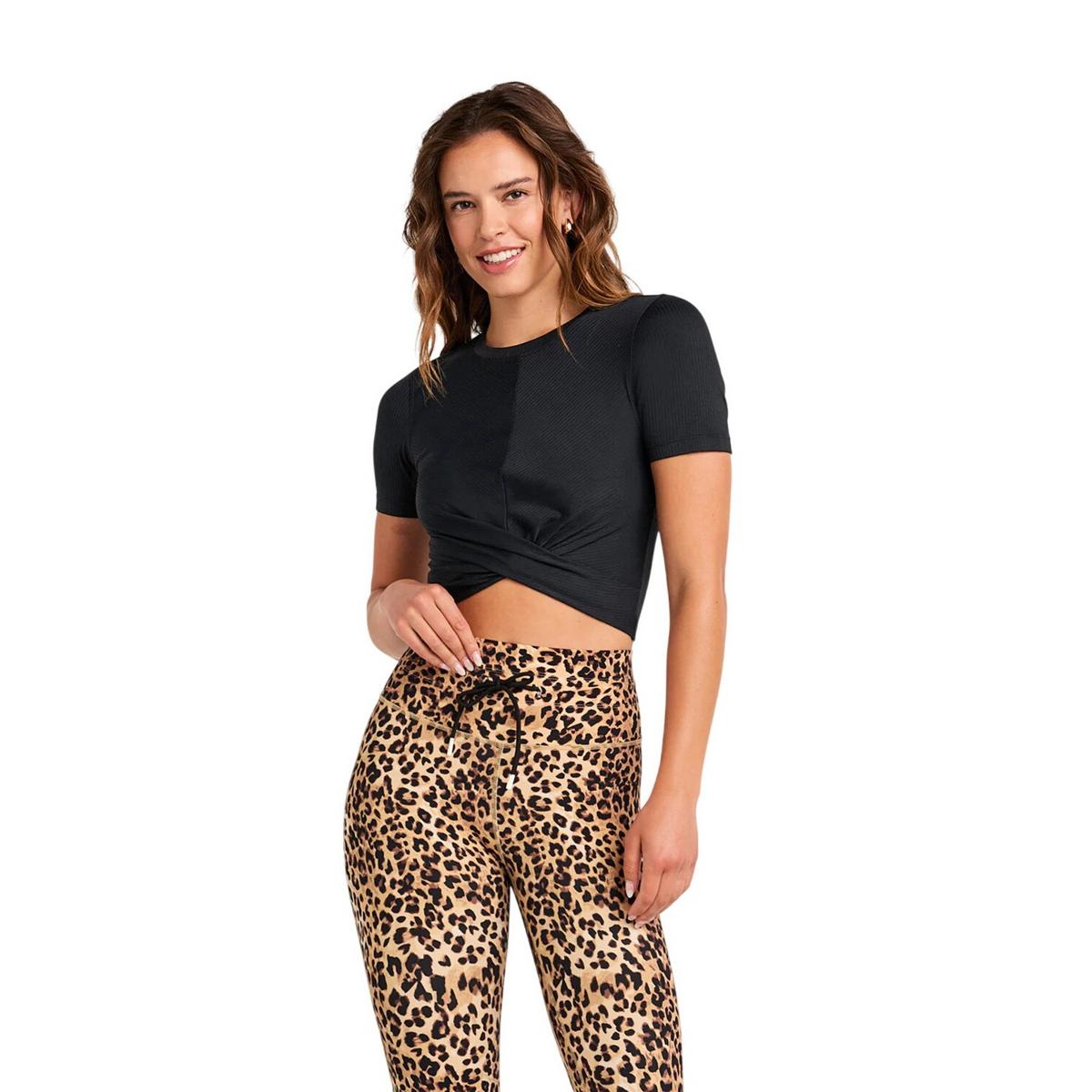 Women's Cream Yoga Summer SS Twist Waist Top T-Shirt