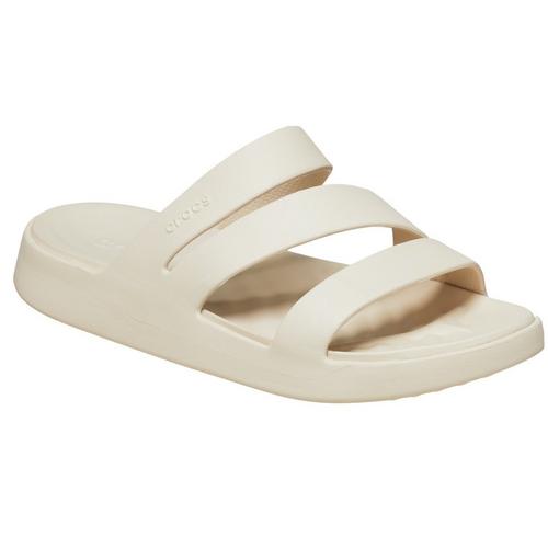 Elevate your vacation style with the Women's Crocs Getaway Strappy Slide Sandals. Part of the innovative Getaway Collection, these slides introduce Free Feel Technology™, Crocs' most seamless comfort innovation to date. The straps are supremely smooth and flexible, designed to float on top of your foot for an unrestricted feeling that truly feels like nothing at all. Perched on a 1.3-inch platform with a sink-in soft Croslite™ footbed, these sandals offer the perfect blend of height and high-performance comfort. Whether you’re strolling along a boardwalk or heading out for brunch, the Getaway Strappy Slide is the lightweight, flexible essential you'll never want to take off.