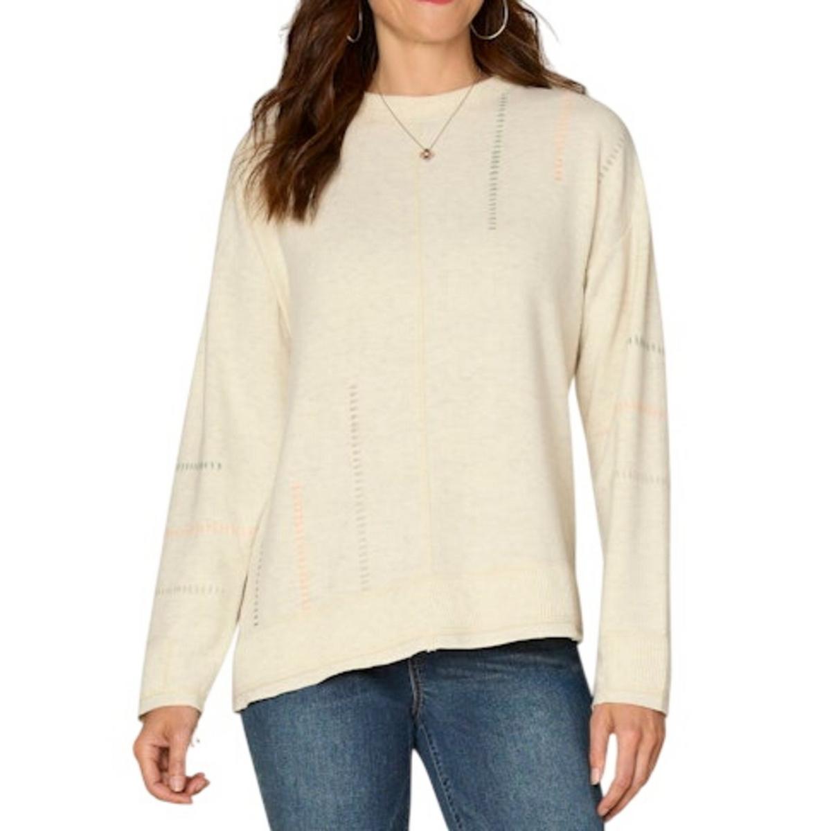 Women's Democracy Asymmetrical Hem Mix Media Knit Long Sleeve Shirt
