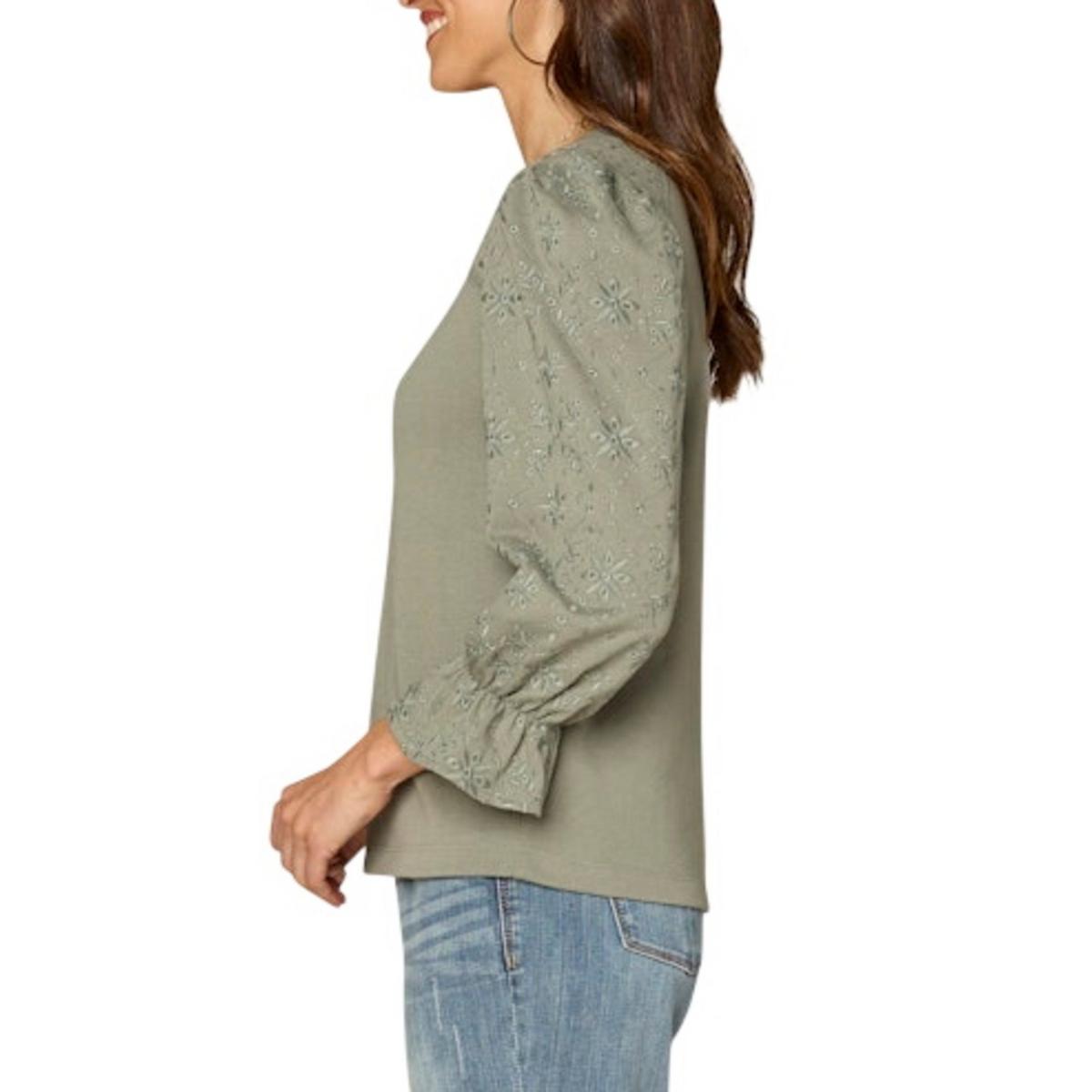 Women's Democracy Die Cut Embroidered 3/4 Sleeve Shirt