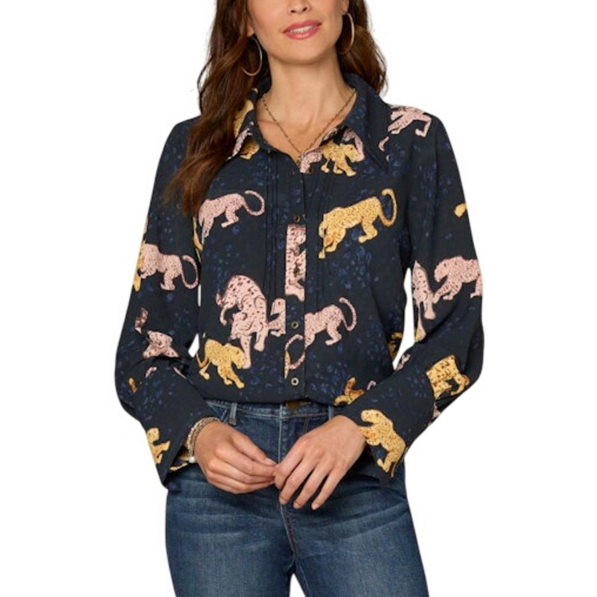 Old Price:Women's Democracy French Cuff Band Printed Long Sleeve Button Up Shirt