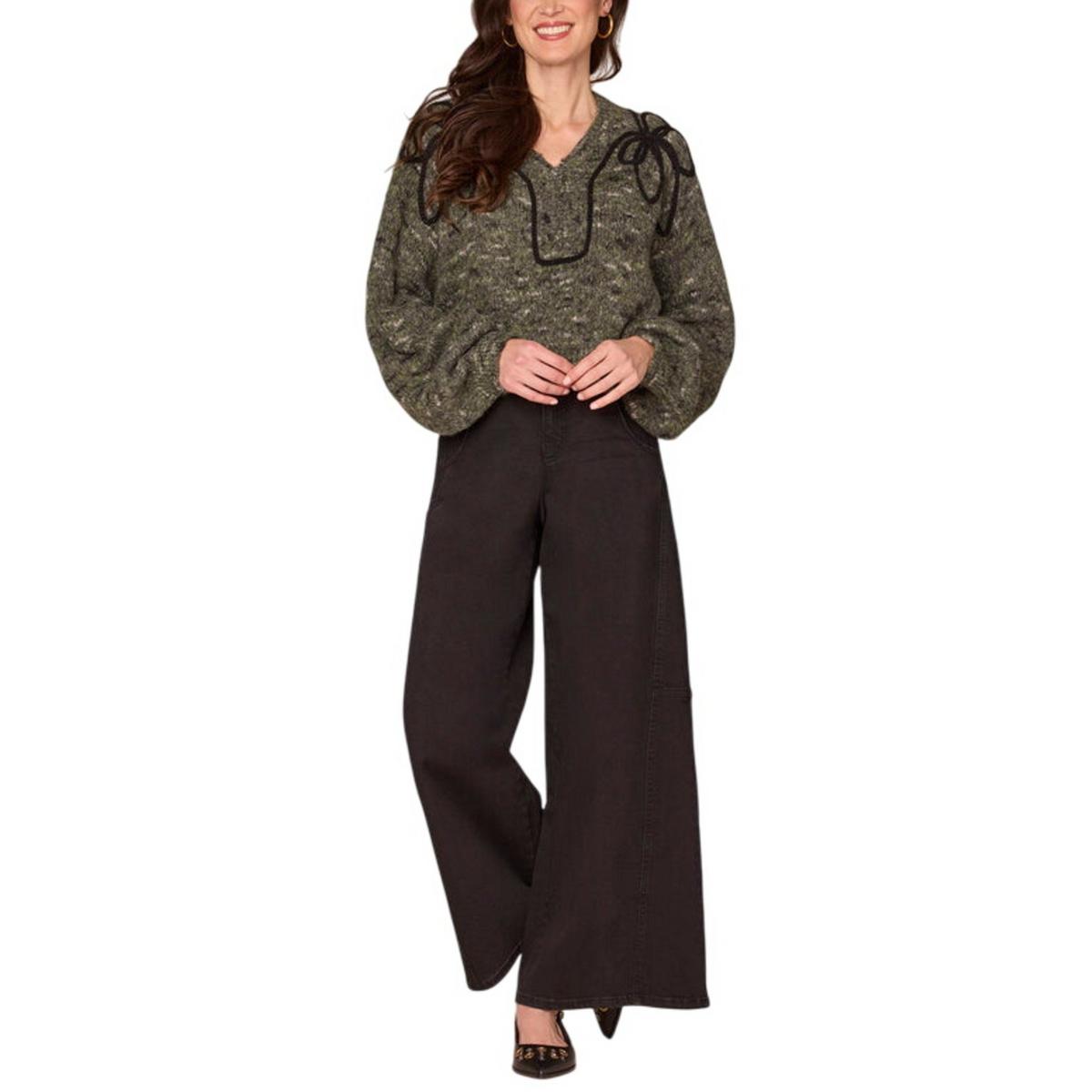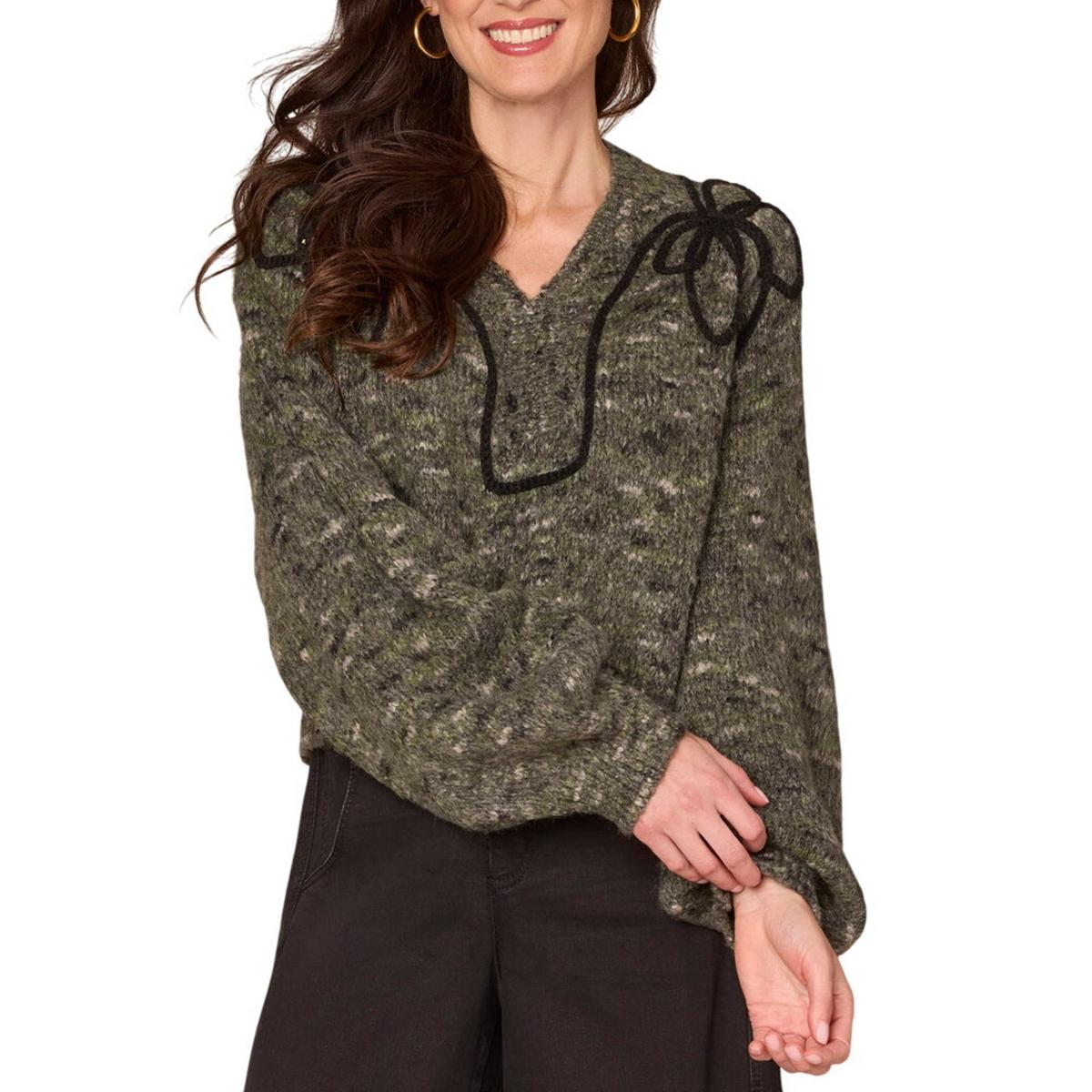 Women's Democracy Placement Embroidery Raglan V-Neck Pullover Sweater