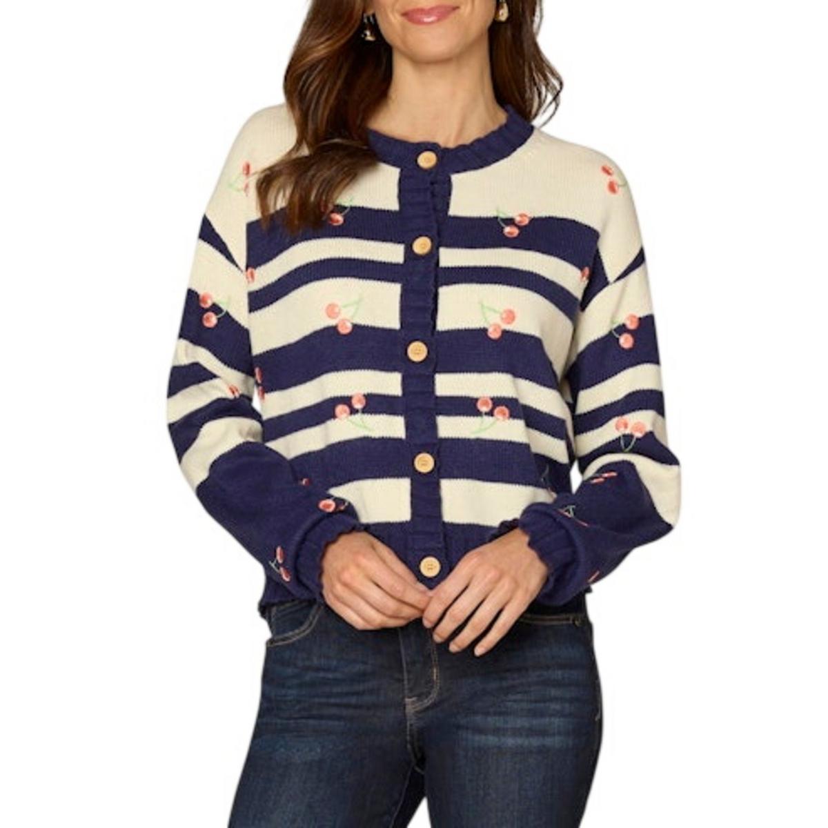 Women's Democracy Placement Stripe With Embroidery Cardigan
