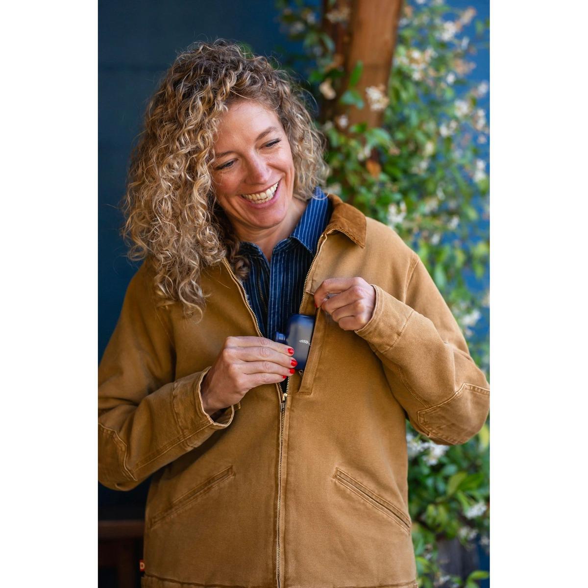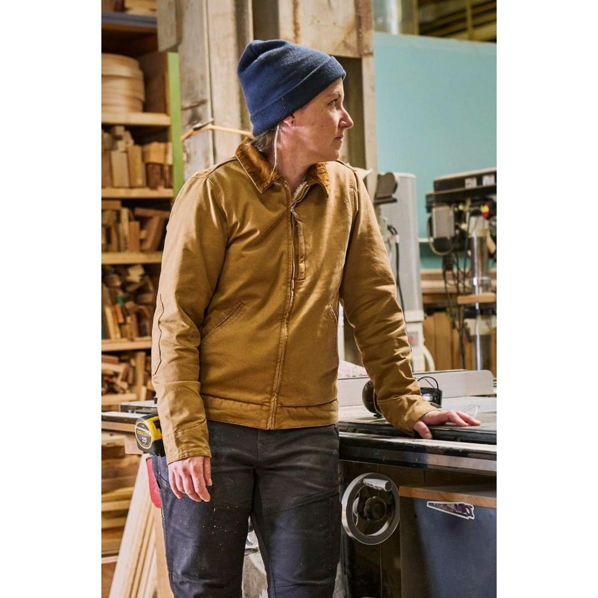 No need to settle for a bomber from a good old boy brand. Old School Work Jacket preserves heritage design details from the basic duck canvas work jacket, but actually fits women, thanks to our women wear testers who put it through the paces. The classic neutral heavy-duty canvas goes with everything. This trucker packs serious stowage: 2 deep slanted front pockets, one inside pocket, and a secure chest zipper pocket that’s generous enough to hold your phone and wallet. Reinforced elbows keep you from wearing out the sleeves while you’re busting your moves. Insulated with a faux shearling lining to keep your core warm while working outdoors, but we put nylon in the sleeves, so you can easily slip it on and off. The corduroy collar adds texture and warmth. Make your moves in vintage-inspired details that add ease, like darted reinforced elbows, snap tabs, and bi-swing pleats in the back. Everything old is cool again– but this time, done right for women, by women.