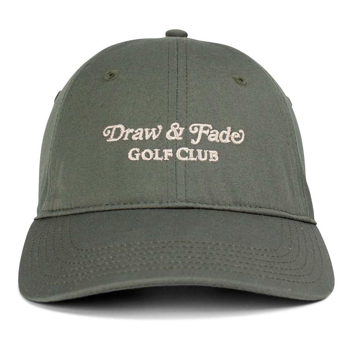 Draw & Fade Golf Club embroideryLow profile six panel capCurved peakAdjustable fastener with metal clasp, tonal under-peak liningLight weight, 100% cotton