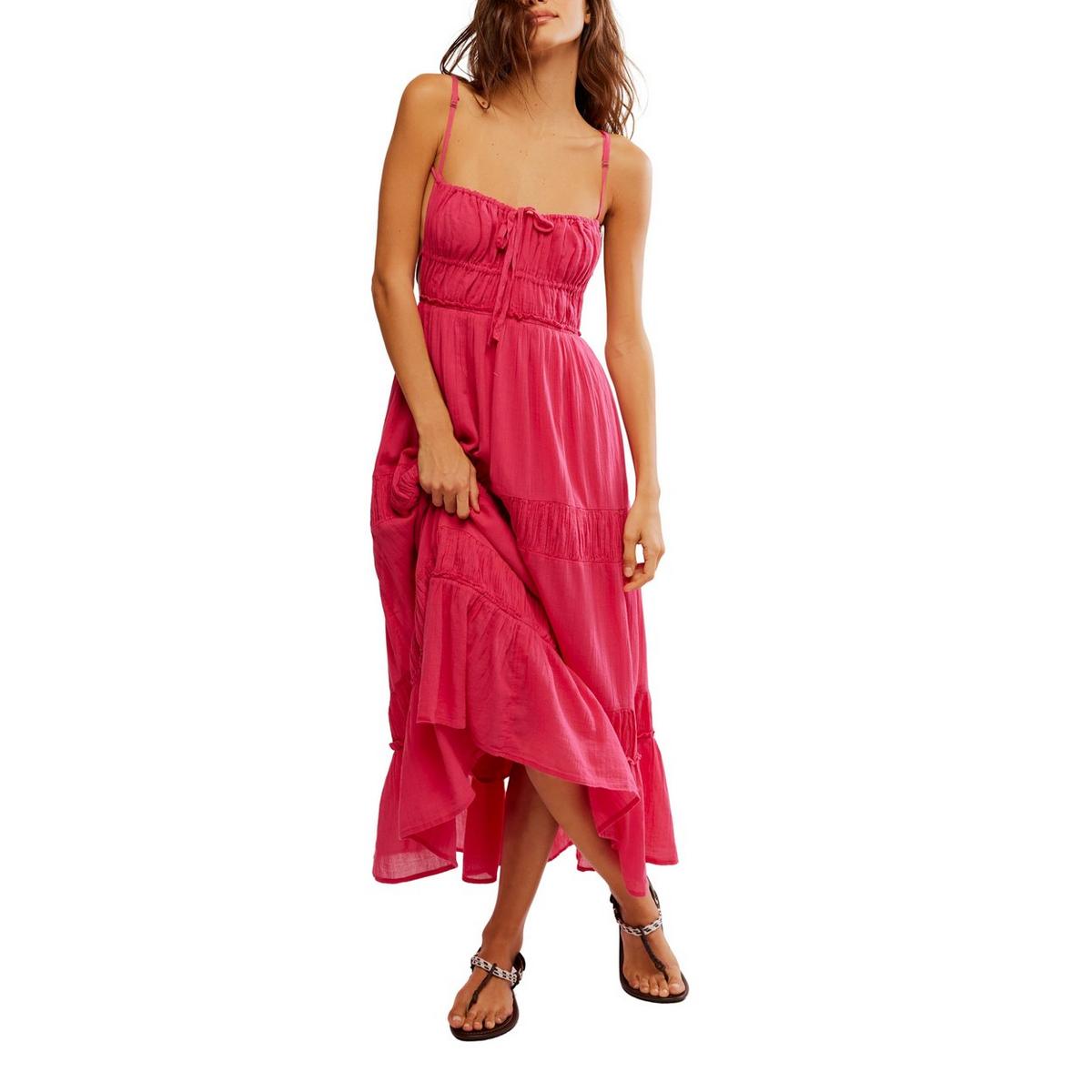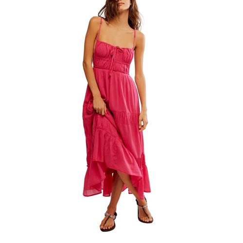 Just as effortless as it is versatile, this wear-everywhere maxi from our free-est collection is featured in a billowy, tiered silhouette with smocked detailing at the bodice and front tie detailing for added dimension.