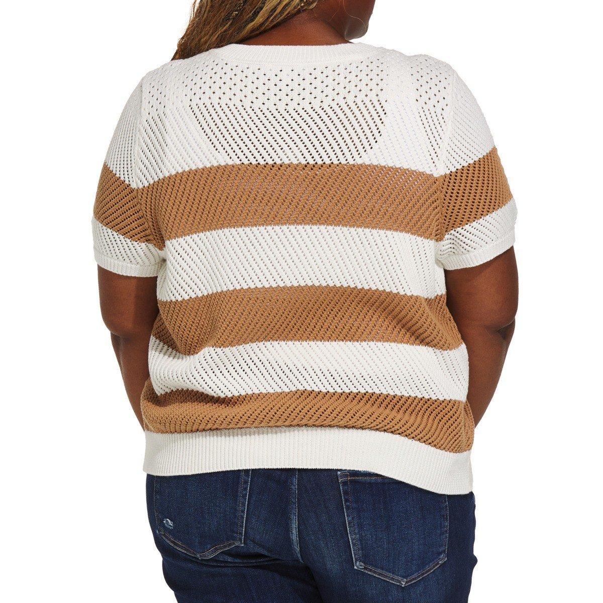 Women's Gilli Plus Size Open Knit Stripe Pullover Sweater