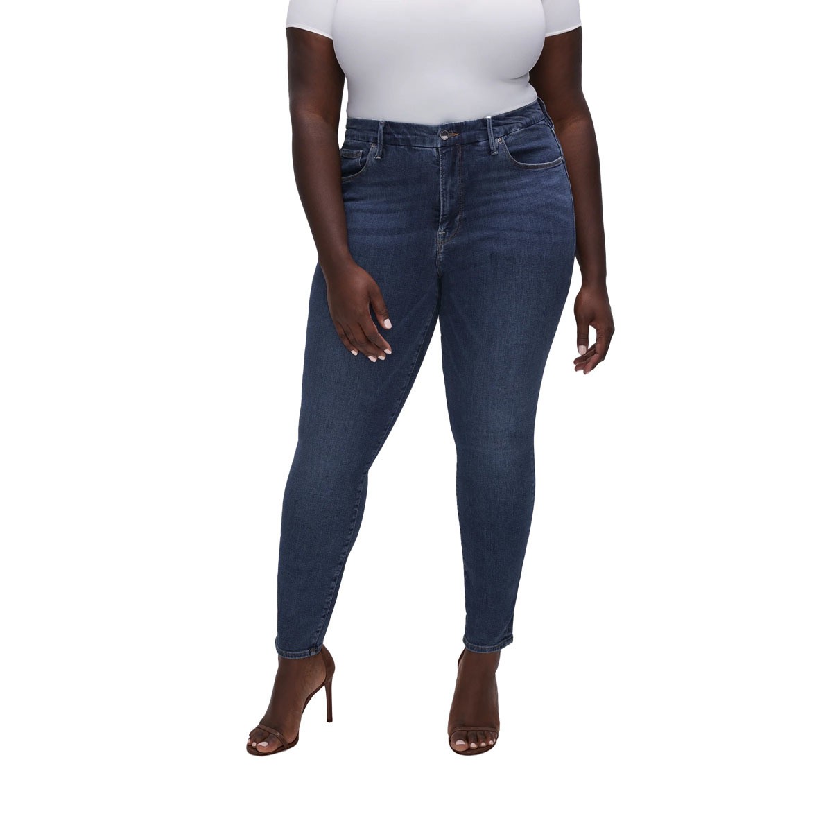 These Women's GOOD AMERICAN Good Legs Skinny Jeans are designed to flatter and shape your body with their body-hugging and booty-shaping fit. Made from a blend of cotton, polyester, and elastane, these GOOD AMERICAN janes offer high recovery for all-day support that won't bag out. Plus, the gap-proof waistband and reinforced belt loops ensure a secure fit. The dark blue wash flatters every curve, and the five-pocket styling provides a traditional, casual style. For confidence and comfort throughout your day, wear the Women's GOOD AMERICAN Good Legs Skinny Jeans.
