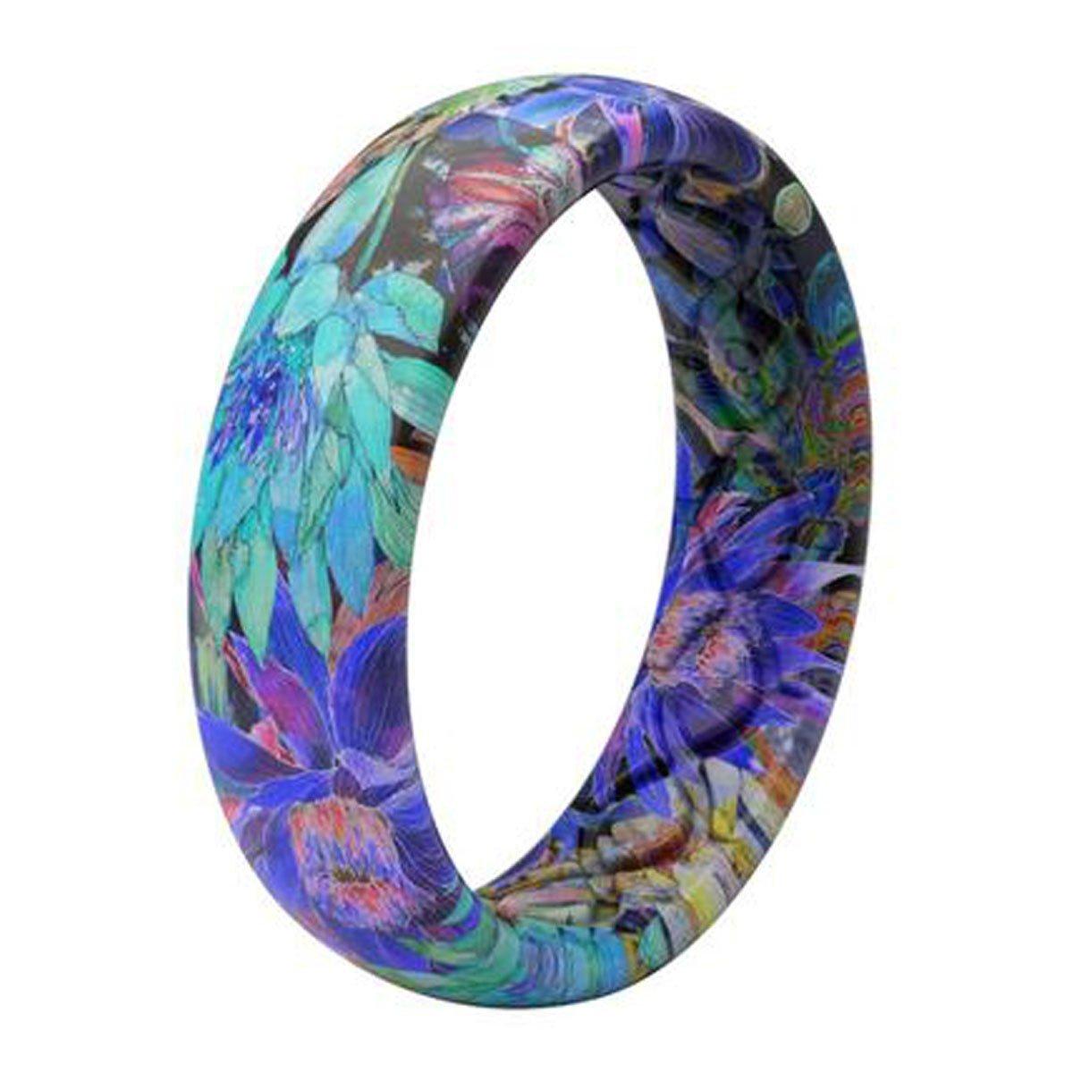Stand out among the crowd with your Groove Aspire Ring. Our Aspire collection is our most creative collection yet, featuring bold patterns that are sure to get you and your ring noticed. Our unique and colorful Twilight Blossom design keeps you looking great while taking on whatever life throws at you. Our cutting-edge Groove technology is designed to allow breathability and comfort on a whole new level. Our high elastomer blend provides maximum durability while allowing flexibility that you can't find anywhere else. This ring is perfect for women of all lifestyles looking to make a statement with their wedding band.