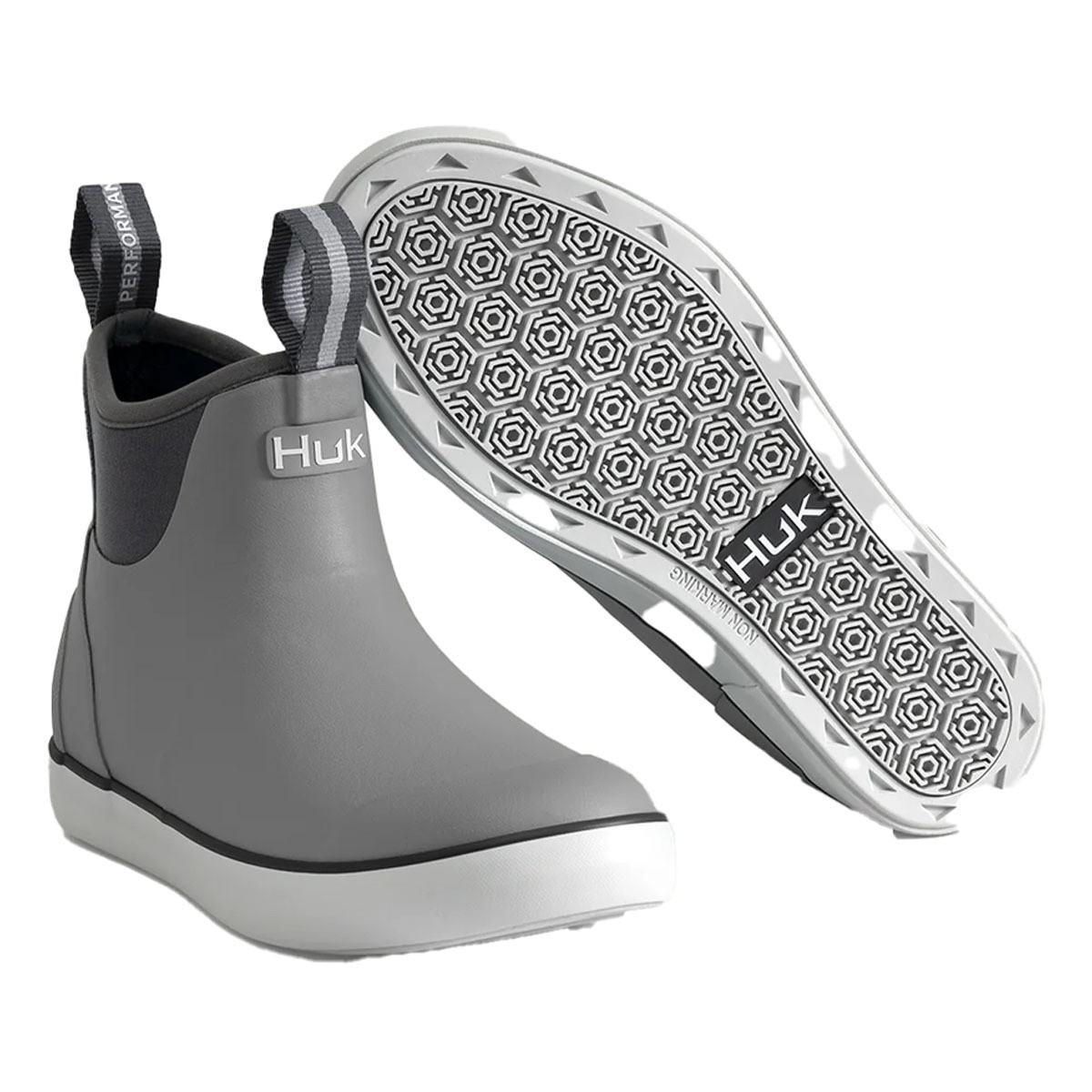 Sometimes, the best fishing is found in the worst conditions. Huk's Rogue Wave fishing boots are specifically designed for all-day comfort and engineered for optimal performance in any condition. These slip-on style boots are constructed of incredibly durable neoprene rubber for protection from the elements and reliable strength. Carefully designed with positive traction in wet conditions, Huk’s exclusive Grip-X Slice outsole traction pattern and microchannels ensure stable footing that grabs in all directions, no matter how slick the boat deck or dock may become. Breathable mesh liners help ensure the boots stay dry on the inside, keeping the wet on the outside. The comfortable rounded toe and non-marking outer sole help make the Huk Rogue Wave boots the right fit for wet weather.